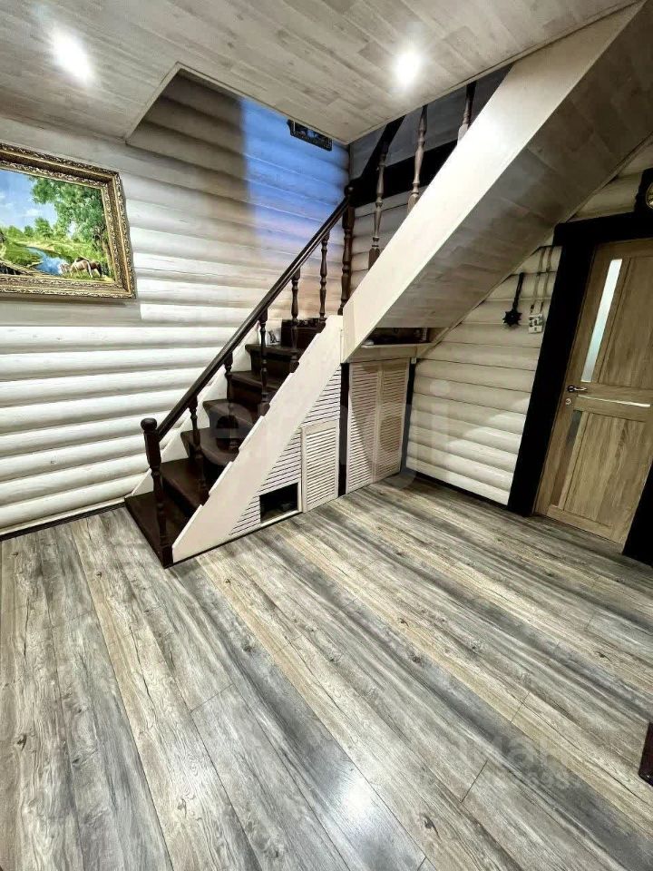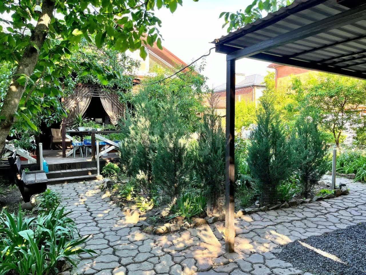 Деревянный дом площадью 144 кв. м из сруба диаметром 20 см обеспечивает высокую энергоэффективность — теплее каркасных построек и оптимально подходит для местного климата. Срок службы конструкции превышает 100 лет, а благодаря современным пропиткам может достигать 200 лет. Дом построен в 2017 году, с тех пор участок полностью благоустроен: огорожен профнастилом, оборудован бетонными тропинками, навесом для машины, просторной беседкой-террасой и вольером для двух собак с отдельными входами. Земельный участок площадью 6 соток включает плодоносные деревья (вишня, черешня, слива, абрикос), кустарники (малина, смородина), виноградник и грядки для овощей. Рядом с домом расположена хозяйственная постройка 34 м для хранения инвентаря.