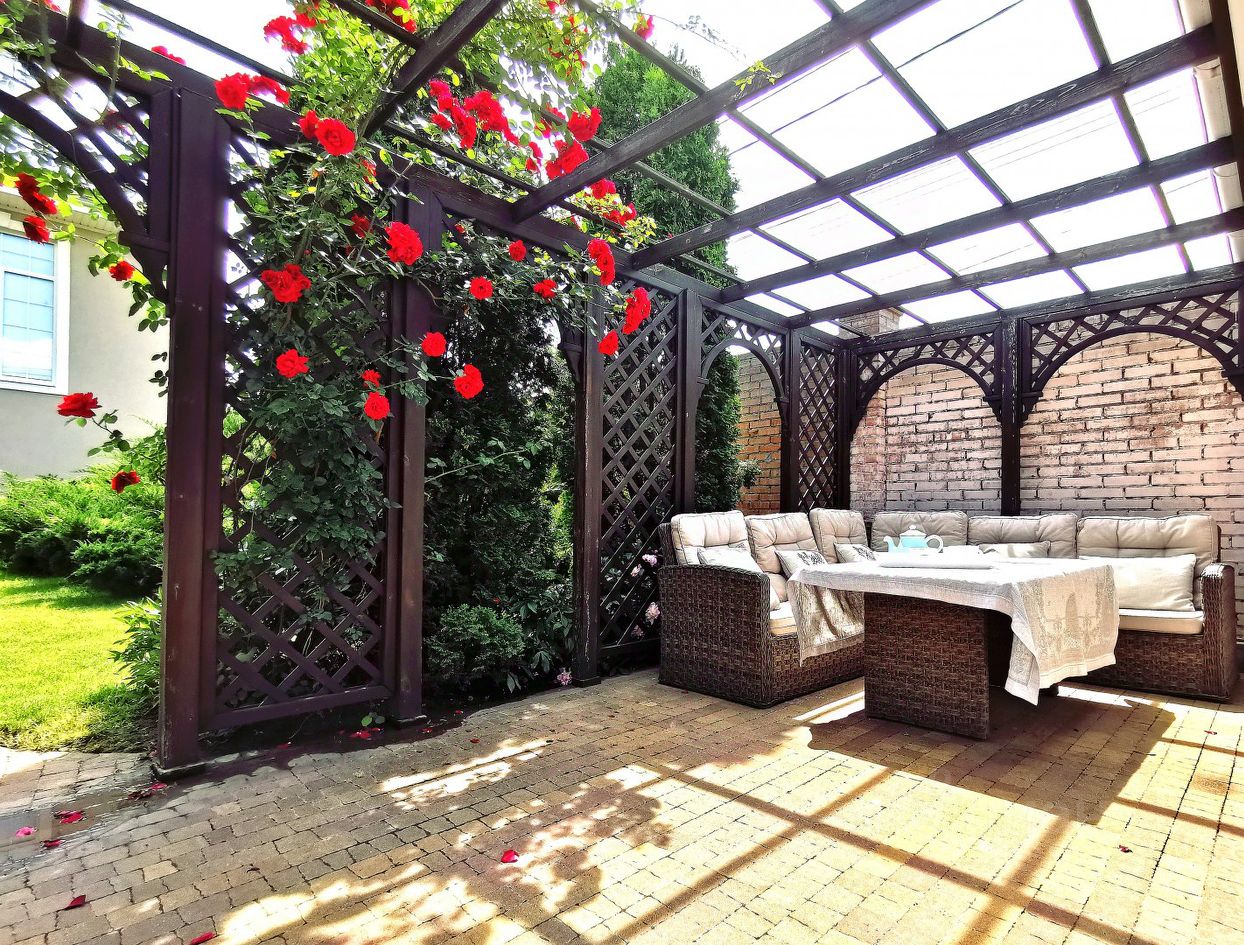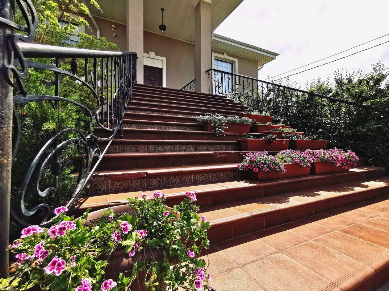 На участке расположен большой навес на 4 автомобиля, гостевой дом с зоной для барбекю. Двор полностью облагорожен: тротуарная плитка, зеленые насаждения, газон, плодовые и хвойные деревья, экзотические кустарники, цветочные клумбы. Все сделано красиво и со вкусом ''золотыми'' руками ландшафтного дизайнера. Имеются накопительные резервуары воды для автополива с зональным управлением. Дом оснащен охранной сигнализацией и системой видеонаблюдения.