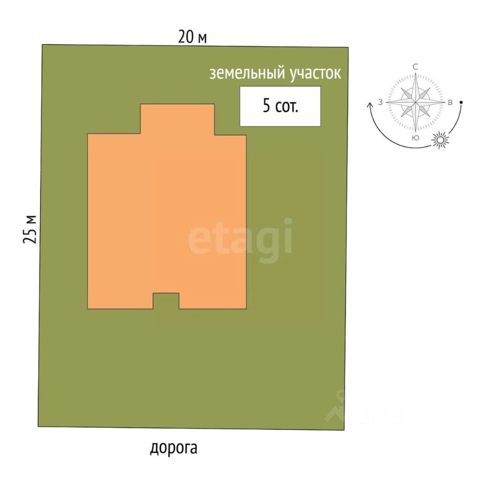 Дом удобно расположен на участке, спереди есть место для палисадника ( 7,5 м до забора) сбоку свободно поместятся 3-4 машины, сзади дома достаточно место для зоны мангала, можно поставить баню или бассейн.