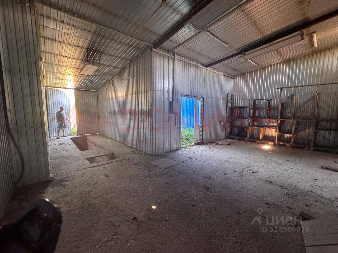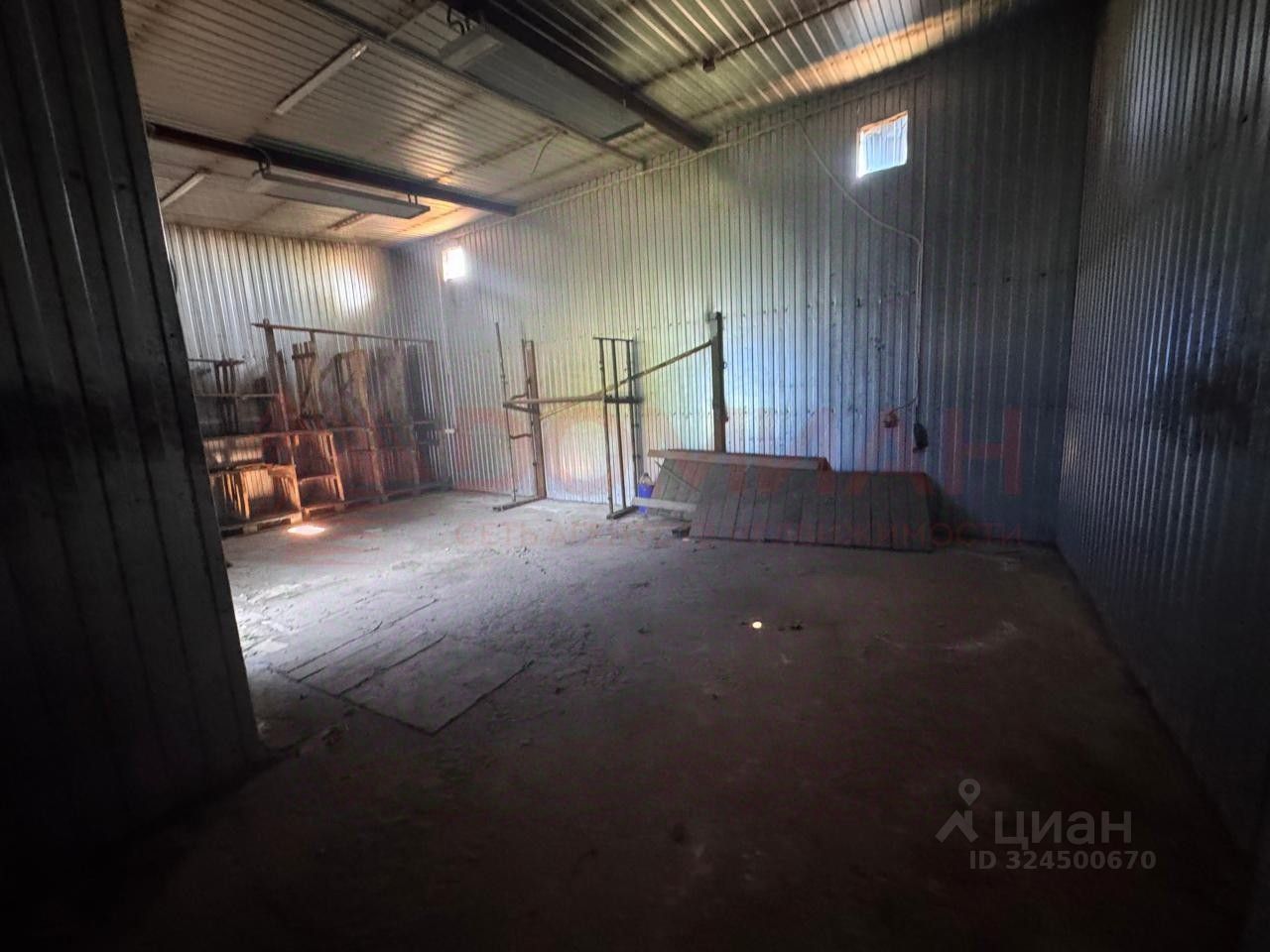 400 к.м ,высота ангара 8 метров. Пол бетон. Ворота под большую грузовую машину.