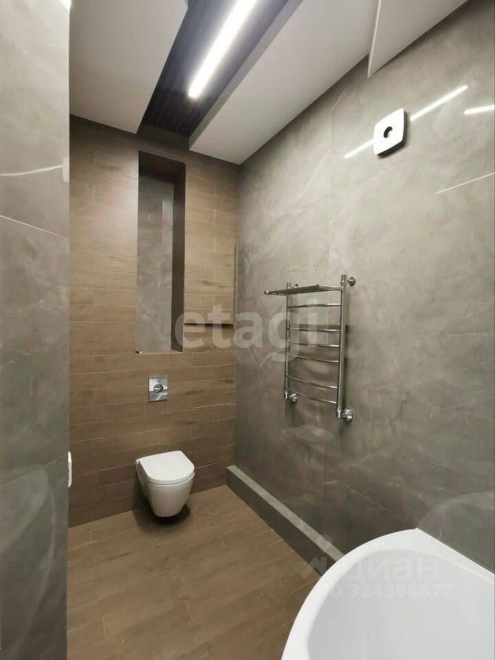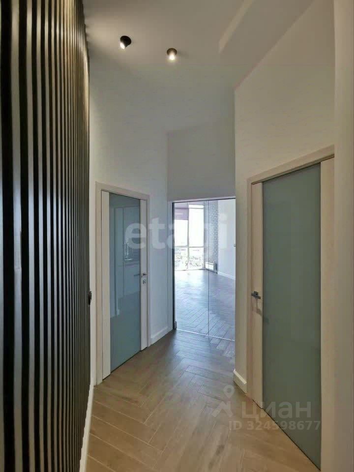 Окна выходят на солнечную сторону. Санузел совмещенный. В квартире гардеробная, панорамные окна, теплый пол.