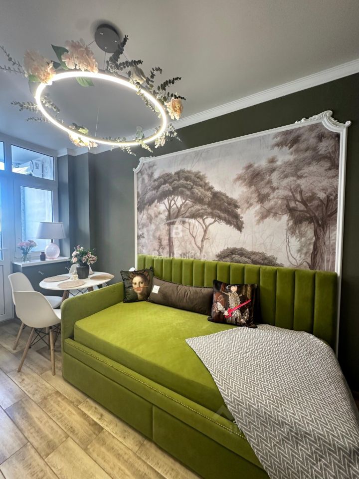 Квартира расположена на 4 этаже 24-этажного кирпично-монолитного дома, построенного в 2021 году. Благодаря дизайнерскому ремонту и высоким потолкам (2,7 м) квартира выглядит просторно и современно. Жилая площадь составляет 20 кв. м, а кухня — 10 кв. м, что обеспечивает комфортное пространство для жизни.