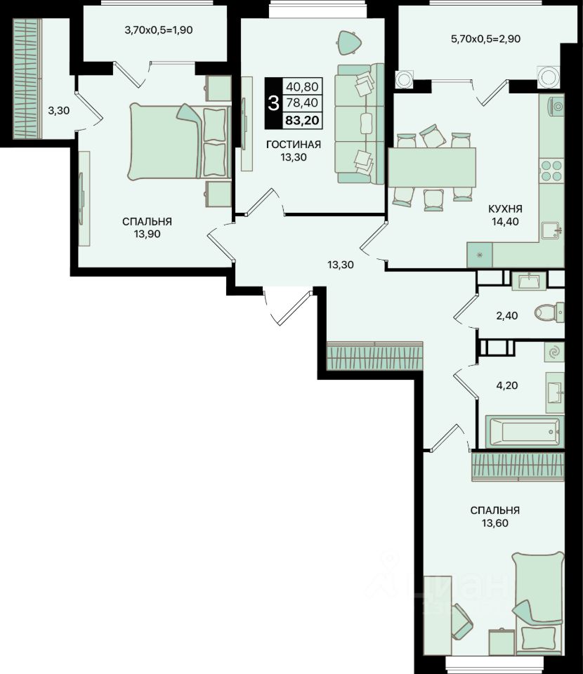Общая площадь83,2 м2