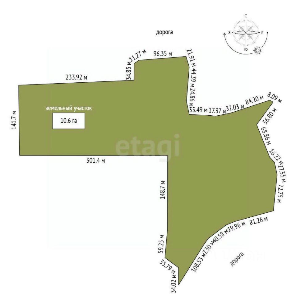 В продаже земельный участок площадью 10,6 гектара.