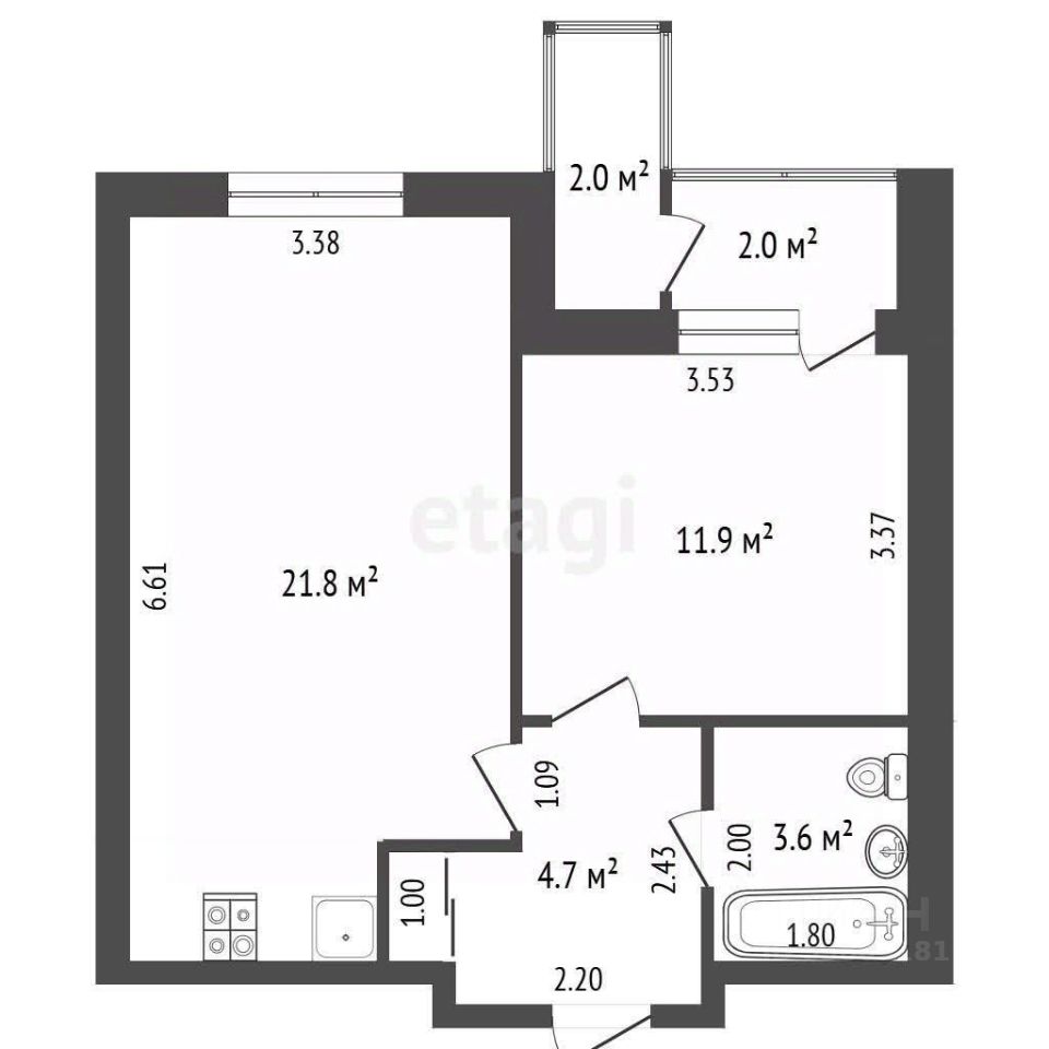 В продаже евpодвушка 42 м2 нa 3 этажe 24 этaжнoгo дoма в ЖК ''Доломановcкий''.