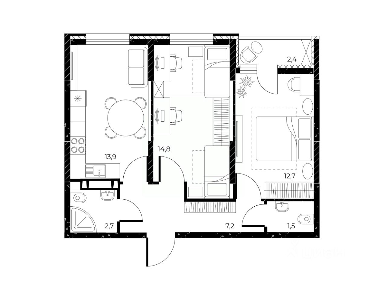 Общая площадь54 м2