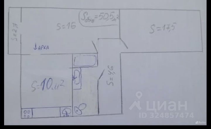 Продаю 2к квартиру на Штахановского 4/5п, общая 50.5м , с/у совм.
