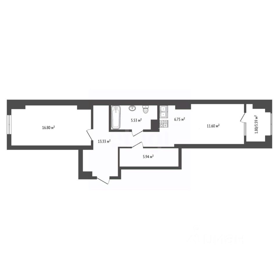 Квартира включает в себя: Просторную кухню-гостиную с выходом на застекленную лоджию, Спальню, Совмещенный санузел, Вид из окна на Театральную площадь и реку.