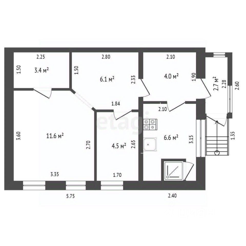 Общая площадь39,1 м2
