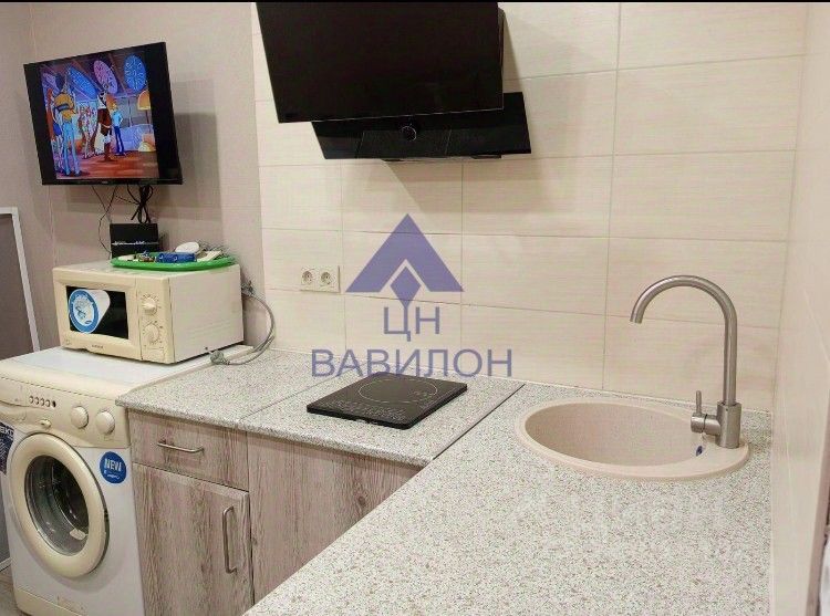 Описание - Полностью меблирована: раскладной диван (спальное место), вместительный шкаф-пенал. - Кухонная зона с рабочей поверхностью, индукционной плитой, мойкой, навесной вытяжкой, на фото — микроволновка. - Бытовая техника: холодильник (Beko), стиральная машина-автомат, настенный телевизор. - Климат: кондиционер — комфорт летом. - Безопасность: хорошая входная дверь. Пол — современный ламинат, стены в тёплых тонах. - Планировка удобна для одного человека или пары, легко зонировать на рабочую и спальную зоны.