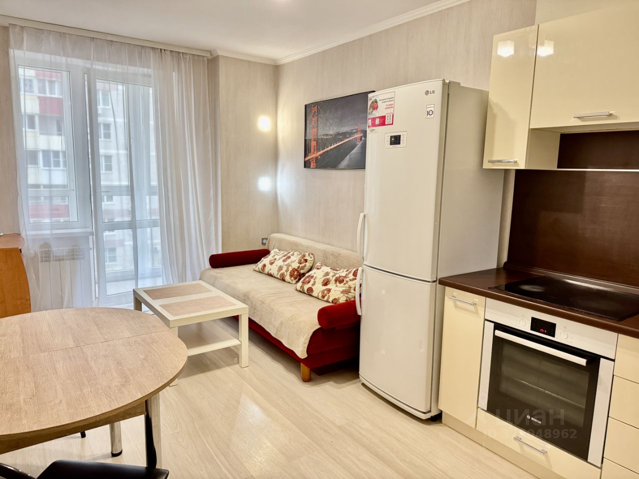 В квартире имеется: • двуспальная кровать, • вместительный шкаф-купе, • современная кухня с необходимой техникой (плита и духовка Bosch, холодильник, микроволновая печь, электрический чайник, посуда), • раскладной диван в гостиной, ТВ-зона, высокоскоростной интернет, • просторный санузел, стиральная машина.