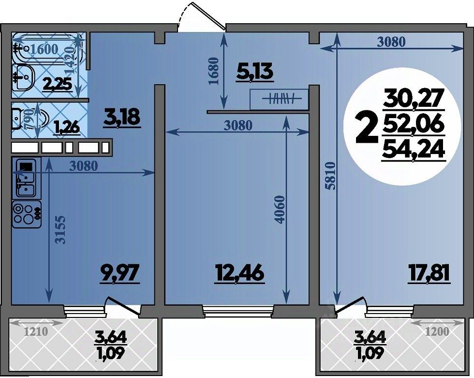 Продаётся 2-комнатная квартира в строящемся доме (Дом 14), срок сдачи: IV-кв. 2026, общей площадью 54.24 кв.м., на 8 этаже. Готовы переехать? Ключи — сразу после сделки! Ремонт в подарок! ИПОТЕКА ДЛЯ ВСЕХ 13,9%