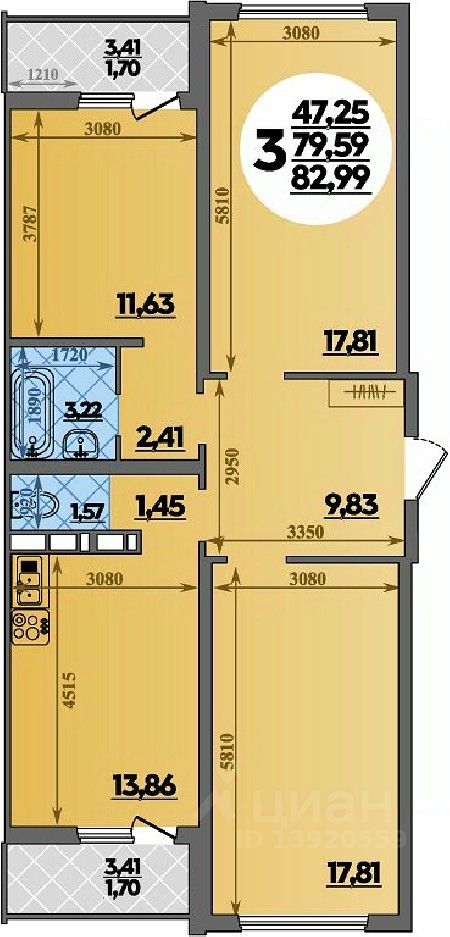Продаётся 3-комнатная квартира в строящемся доме (Дом 14), срок сдачи: IV-кв. 2026, общей площадью 82.99 кв.м., на 16 этаже. Готовы переехать? Ключи — сразу после сделки! Ремонт в подарок! ИПОТЕКА ДЛЯ ВСЕХ 13,9%