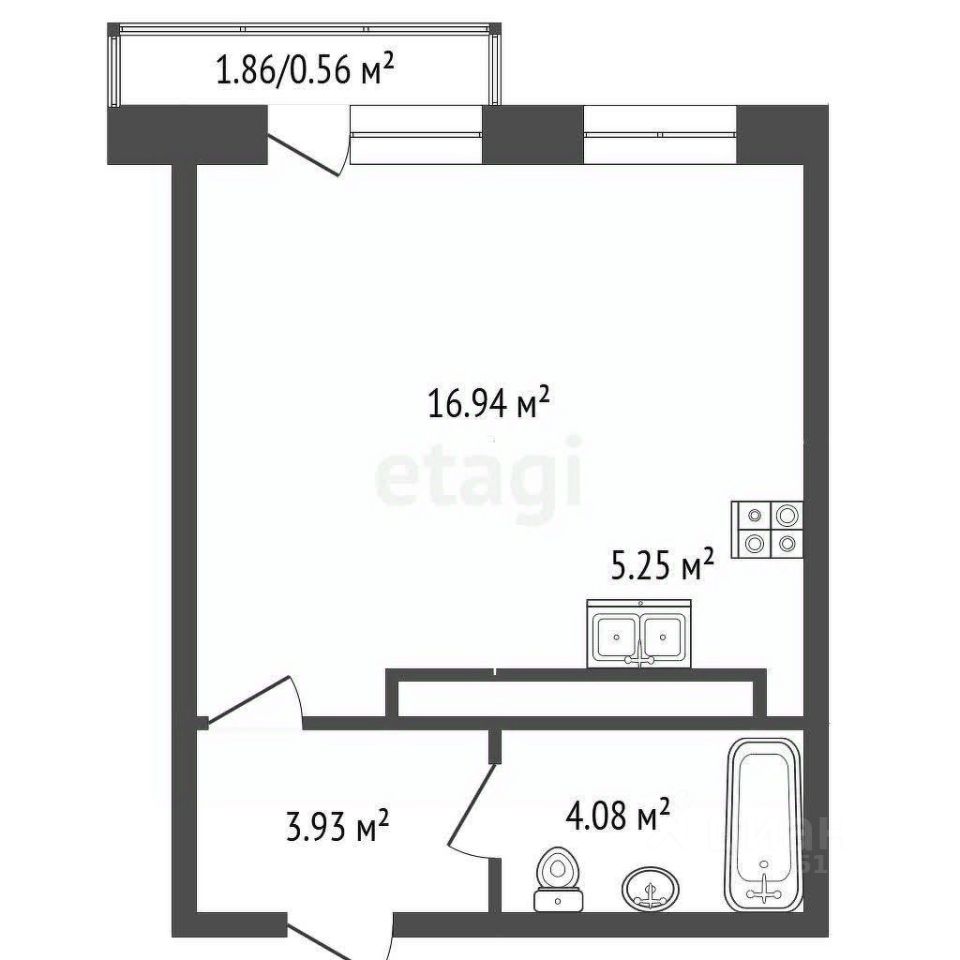 Просторная однокомнатная квартира площадью 30 кв. м