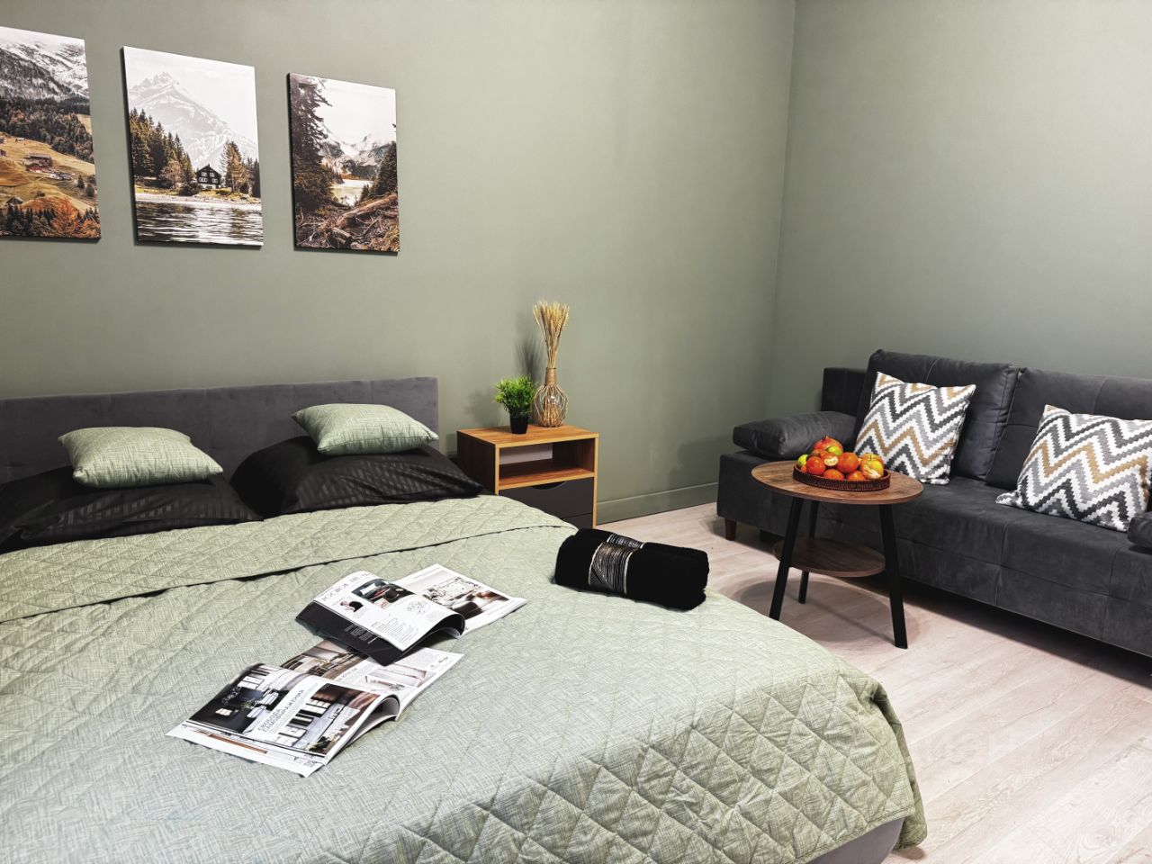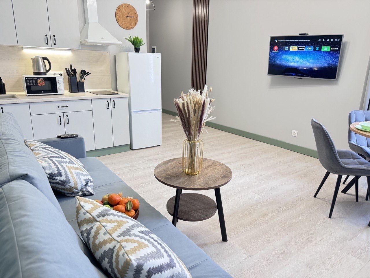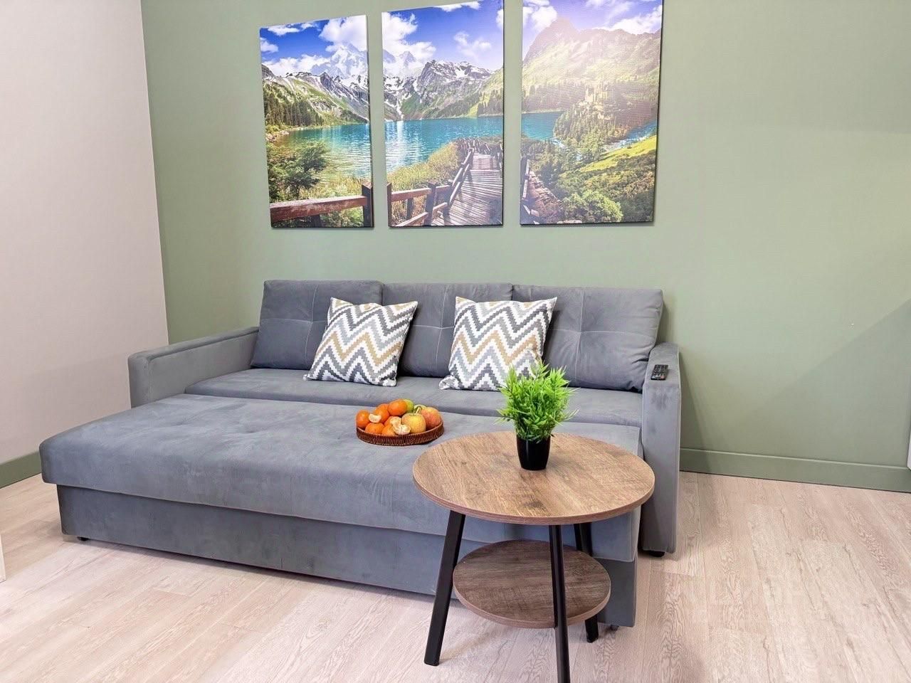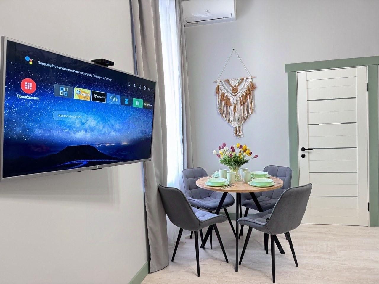 В КВАРТИРЕ — Smart TV, высокоскоростной Wi-Fi (бесплатный) — Сплит система — Двуспальная кровать (160х200) — 2 Двуспальных раскладных дивана — Оборудованная кухня (холодильник, варочная панель, микроволновая печь, чайник) — Набор посуды и столовых принадлежностей — Стиральная машина, фен — Шампунь, гель для душа, жидкое мыло,полотенца — Места для хранения вещей