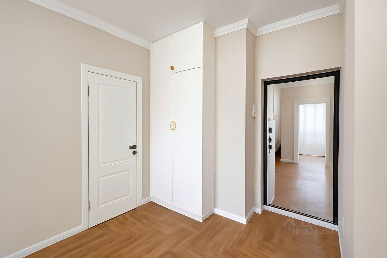 О КВАРТИРЕ: Грамотная планировка квартиры включает в себя 2 отдельные спальни, зонированые кухню и гостиную (10+17 кв.м.), отдельную гардеробную комнату (3,5 кв.м.), совмещенный санузел (5 кв.м.), просторный холл. Высота потолков в готовом виде 2,95м Продуманы места под хранение во всех жилых помещениях, установлены встроенные шкафы, функциональная система разводки электрики - большое количество розеток под все нужды, несколько сценариев света, установлены Умные выключатели света (система Умный дом под управлением Алисы, Алиса установлена в квартире), Стильный просторный санузел с отдельно стоящий ванной, установлены датчики протечки воды во всех мокрых точках - и автоматические краны перекрытия воды в случае протечки, что обеспечивает безопастность вас и ваших соседей. Так же в санузле предполагается место под бойлер большого объема с готовыми выводами воды за люком скрытого монтажа. Кухня полностью оснащена мебелью и техникой Boch - встроенный холодильник, электроплита, духовка, посудомоечная машина, установлена многофункциональная раковина (основной смеситель, для питьевой воды, внутренний диффузор для моющего средства, разделочная доска, овощемойка, дуршлаг, ринзер для стаканов - для удобства проживания семьи), кухонный фартук - керамогранит, лаконичная вытяжка-труба, из кухни выход на витражную лоджию. Каждая из спален оснащены местами для хранения, мастер-спальня (16 кв.м.) с кроватью на заказ c подъемным механизмом, матрасом Askona, прикованными тумбами, предполагается место под туалетный стол или детскую кроватку. Гостиная предполагает место под диван и TV зону Выделенная гардеробная позволяет хранить квартиру без визуального шума. На полу ламинат высокого класса стойкости, уложенный елочкой, покрытие стен моющиеся обои, имитирующие крашенные стены. После ремонта в квартире никто не жил.