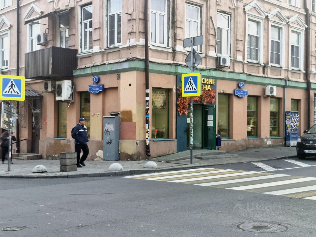 Парковка: платная, вдоль дороги. Погрузка/разгрузка: есть заезд во двор. Окружение: рядом магазины семян, красок, кафе напротив. Транспортная доступность: высокая (остановки общественного транспорта в шаговой доступности).