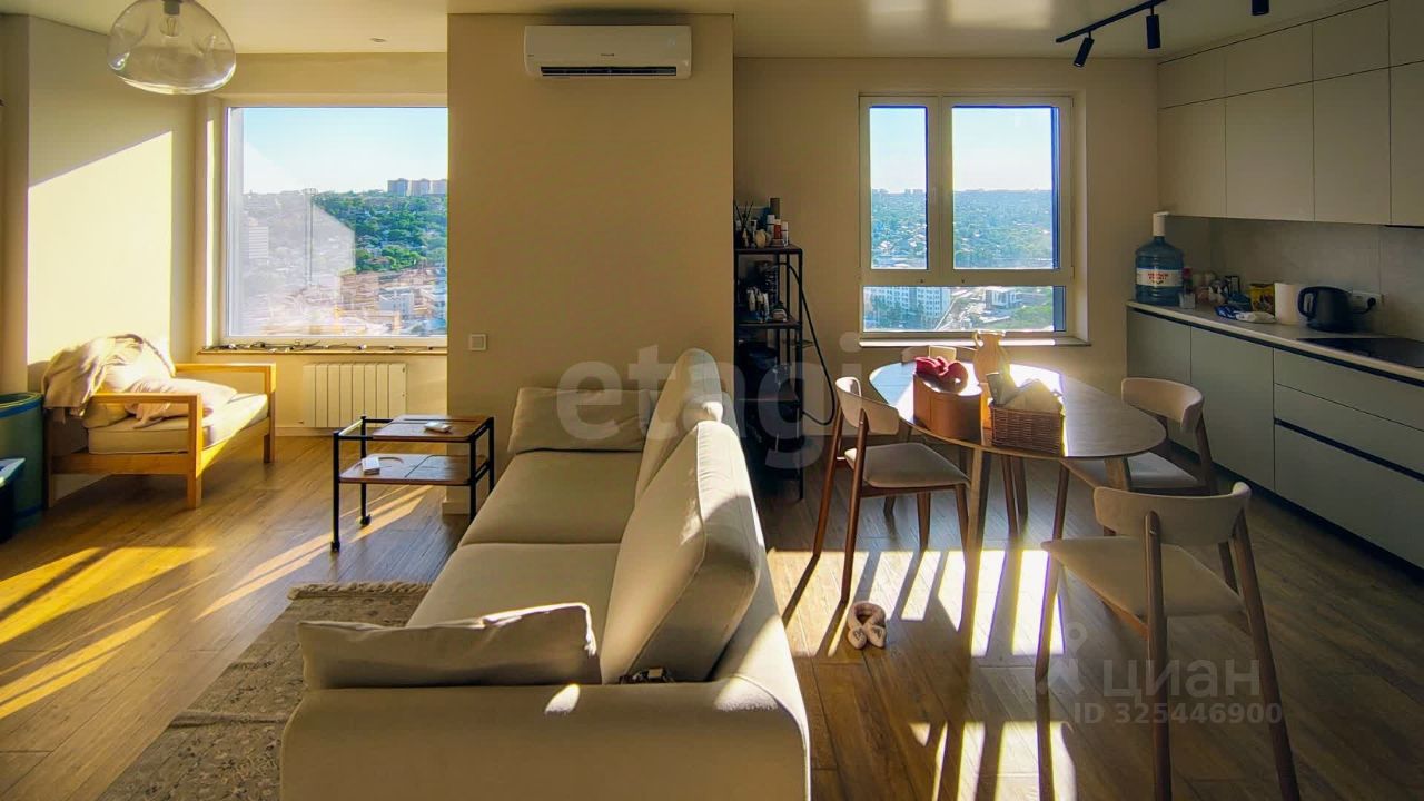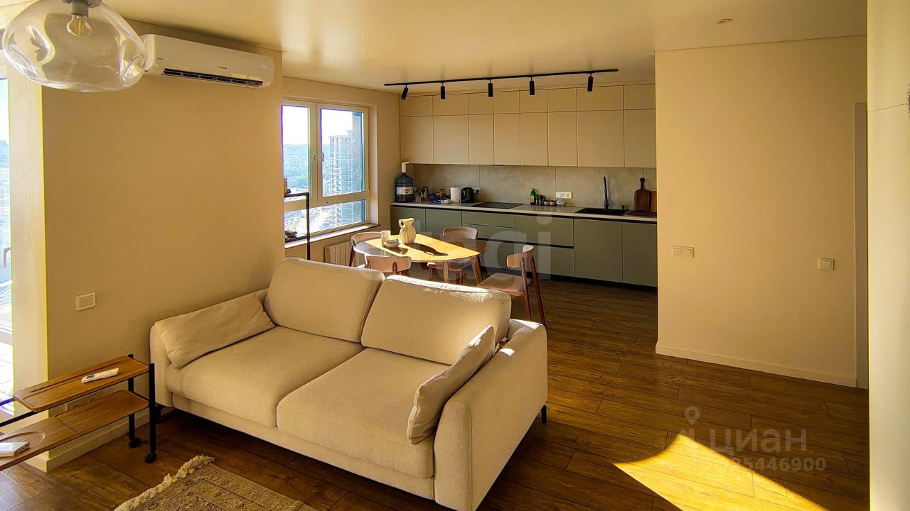 Продается 2-к квартира площадью 65 м² расположена на 22 этаже 24-этажного дома, что обеспечивает панорамный обзор и обилие естественного света благодаря солнечной стороне и большим окнам. Изолированные комнаты и раздельный санузел повышают комфорт проживания для семьи или пары. Просторная кухня 15 м² объединена с гостиной, создавая удобное пространство для приготовления пищи и приема гостей. В квартире выполнен качественный дизайнерский ремонт с продуманной планировкой, включая гардеробную для хранения вещей. Балкон позволяет наслаждаться видом и свежим воздухом на высоте. В помещении установлена современная техника: кондиционер, холодильник, посудомоечная машина и водонагреватель, что избавляет от необходимости дополнительных затрат. Кухня оборудована мебелью, также предусмотрены спальные места и системы хранения. Расположение в высотном доме обеспечивает хорошую транспортную доступность и развитую инфраструктуру района. Объект подойдет тем, кто ценит комфорт, вид из окна и готовое качественное жилье без необходимости ремонта.