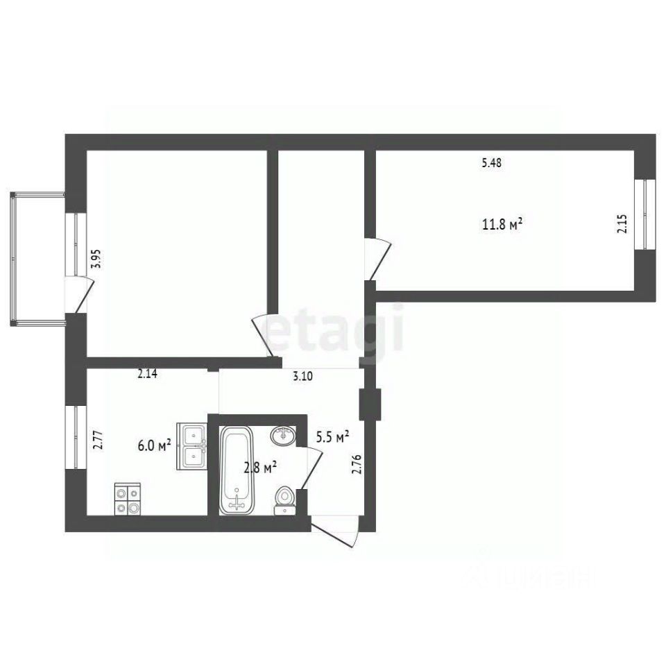 Продается двухкомнатная квартира общей площадью 47.2 м² в кирпичном малоквартирном доме 1972 года постройки.