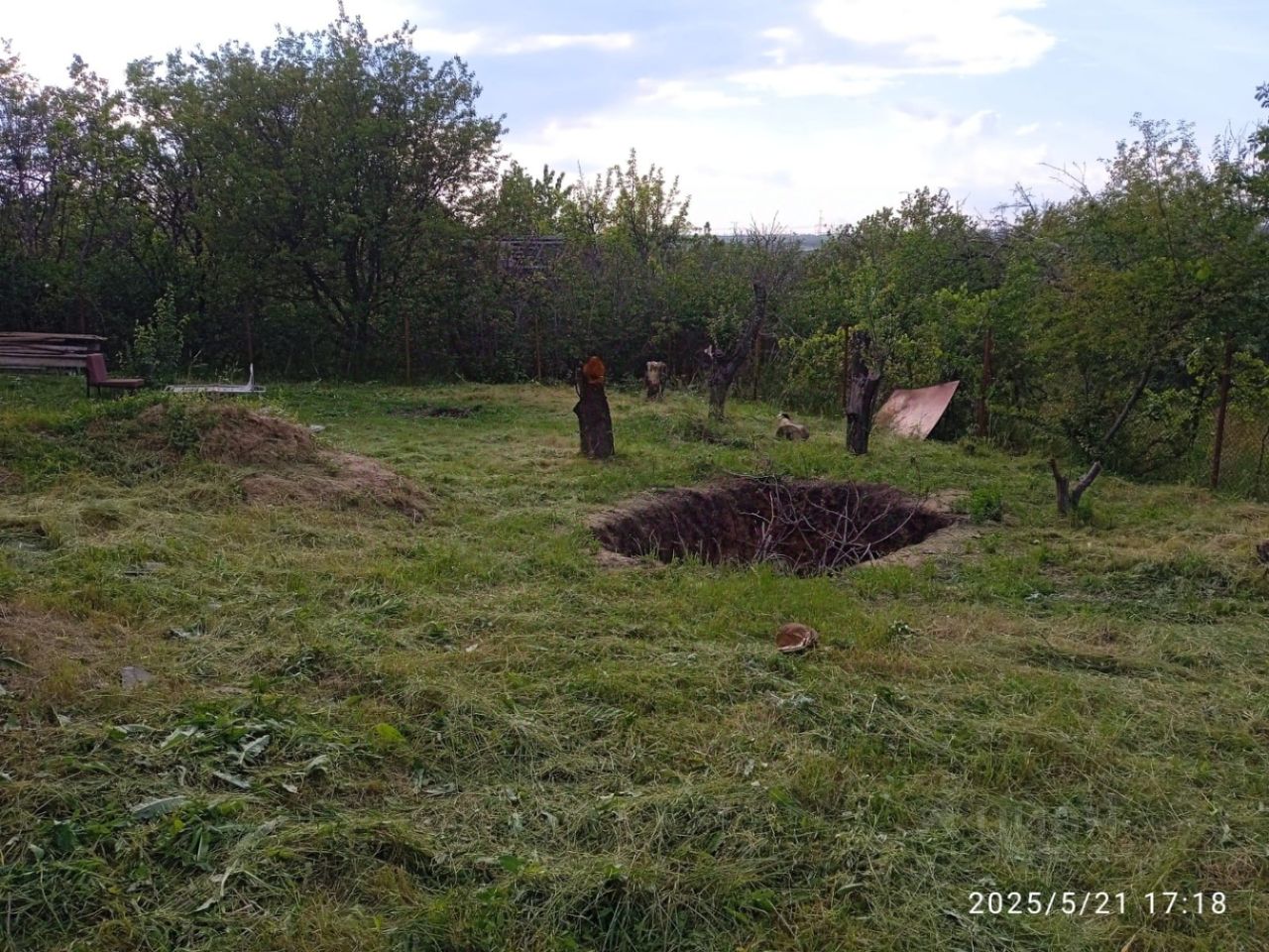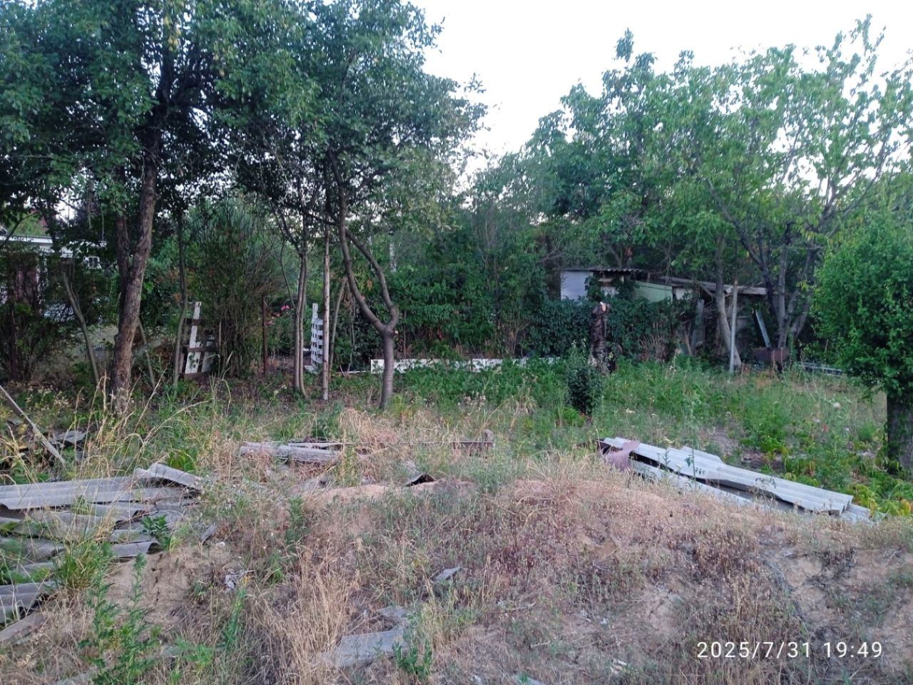 На территории участка имеется небольшой домик, огорожен забором. Рядомм живут соседи.