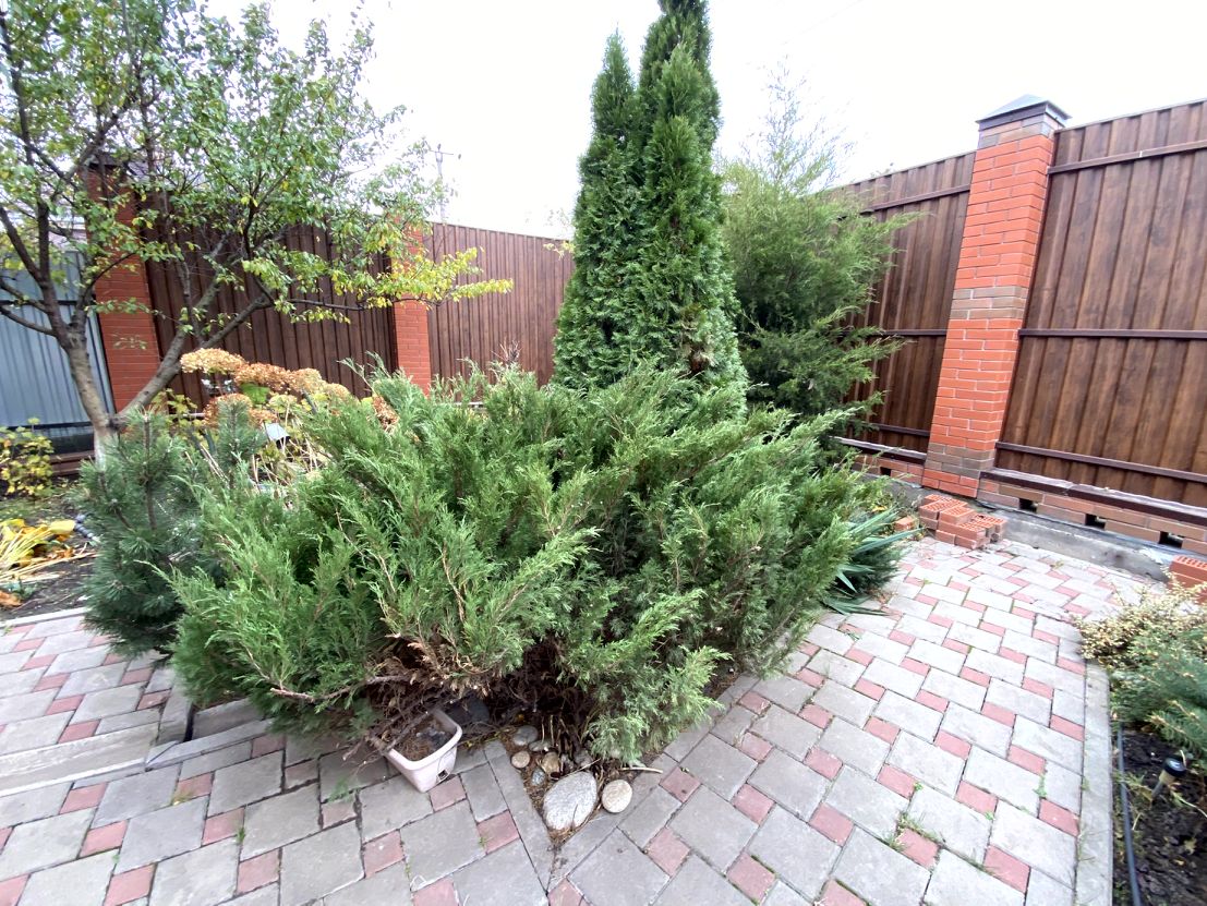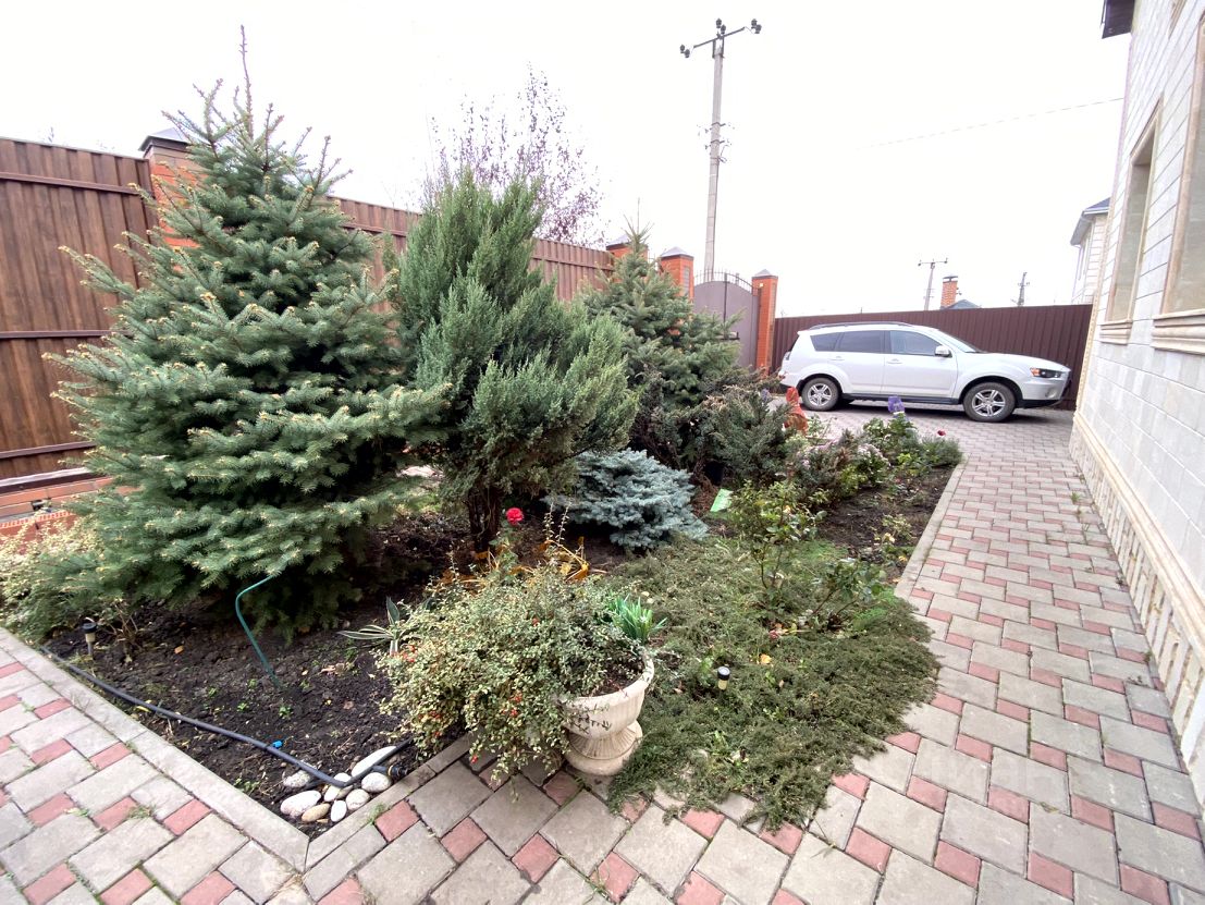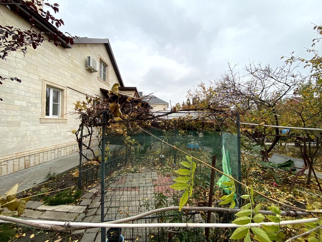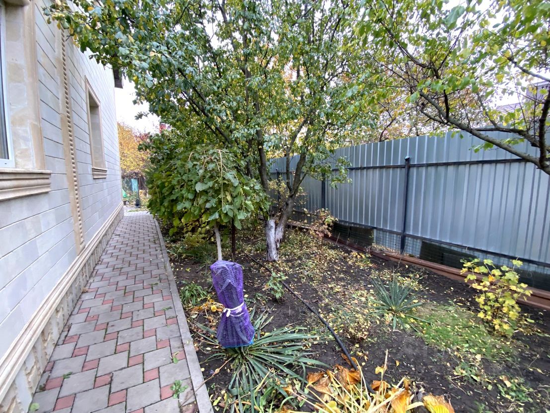 Участок ровный 8 соток. Въезд на 4 машины сделана тротуарная плитка, дорожки вокруг дома. ворота автоматические, калитка, по территории кирпичный забор. Кроме городской воды есть и скважина для полива и тд. Городская канализация Во дворе на фасаде цветы, на заднем дворе плодовый сад, фруктовые деревья, малина и тд.