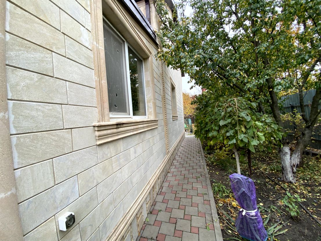 Дом строился в два кирпича +обложен дагестанским камнем.