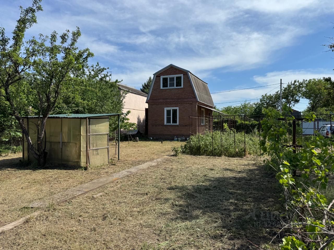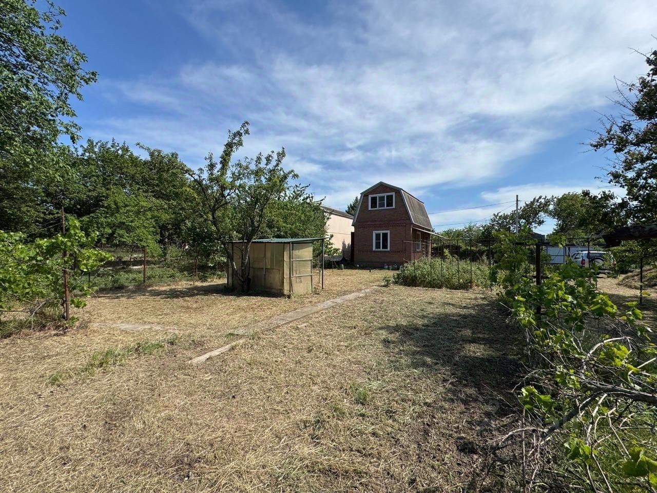 Продается дача в СНТ Мичуринец-3. Собственник. Расположена на двух объединенных земельных участках. Участки размежеваны. Дом кирпичный. На первом этаже одна комната и кухня. В доме имеется подвал. Электричество в доме, газ вдоль забора, водоснабжение городское на участке. Имеется 2 накопительных бака для воды. На участке плодовые деревья, малина, виноград и другие ягоды. Рядом постоянно проживают порядочные соседи.