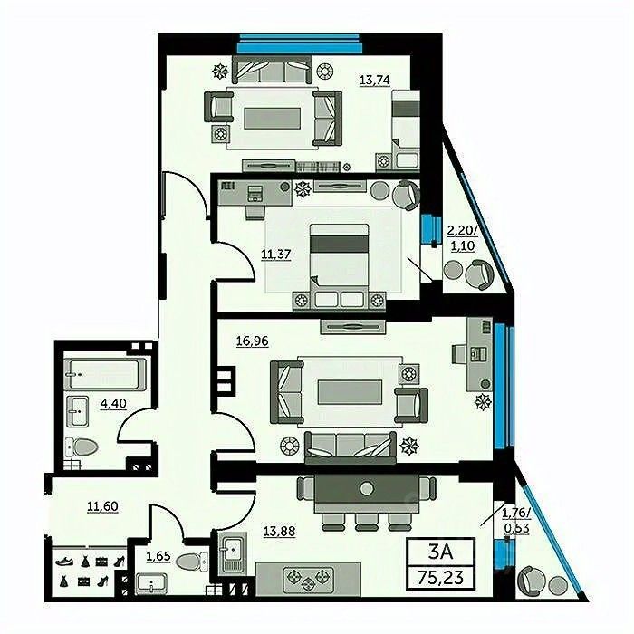 Арт. 67130418 Продается Просторная трехкомнатная квартира удачной планировки в ЖК РУБИН. Стройвариант с финишной стяжкой пола, Срочная продажа Цена дешевле на 1 млн чем у застройщика.