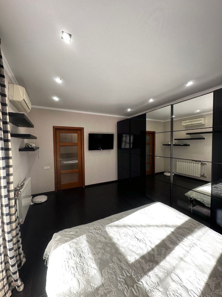 ГОСТИНАЯ-23м2 : Итальянский кожаный гарнитур, мебельная горка, сплит-система. СПАЛЬНЯ- 17м2: Спальный гарнитур, шкаф-купе, сплит-система. КУХНЯ-12м2 : Кухонный гарнитур со всей бытовой техникой, холодильник встроенный, обеденная группа, сплит-система. САНУЗЕЛ: совмещен, светлый кафель, акриловая ванна+ душевая кабина. ФИШКА: 2 балкона+ своя терраса. Террасу можно использовать как открытый солярий, место для настольных игр, чаепитий и обедов.