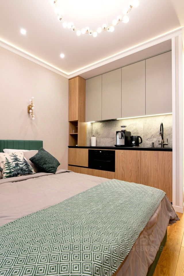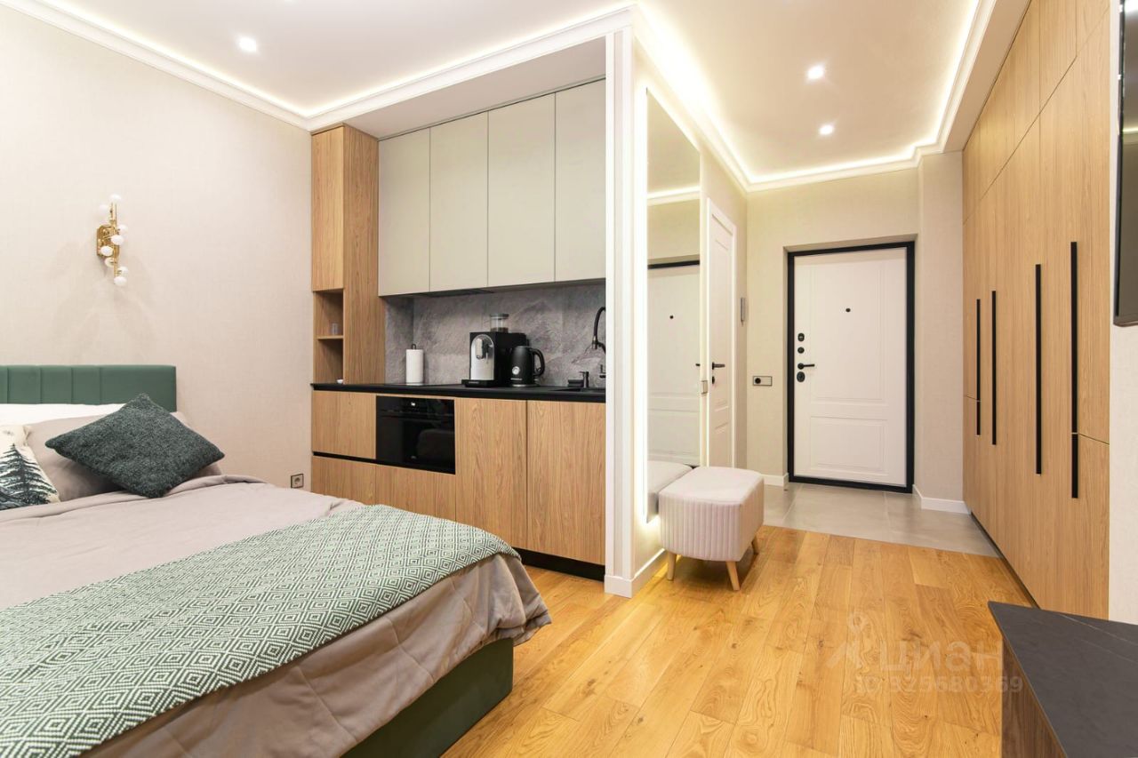 Квартира-студия укомплектована всем необходимым, для взыскательного клиента, система освещения выполнена с учётом зонирования пространства с удобной регулировкой.