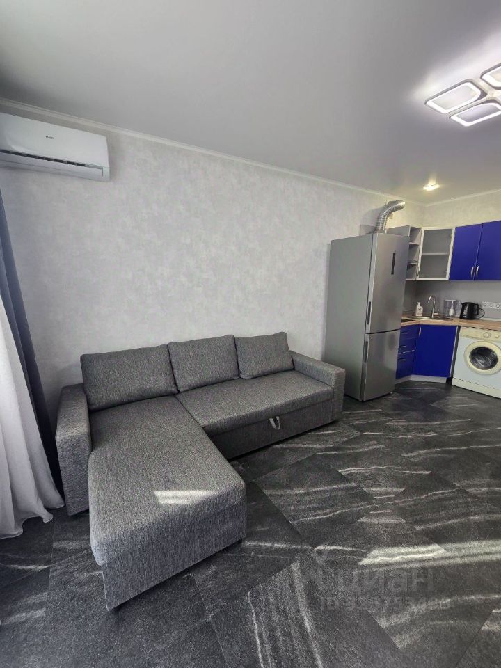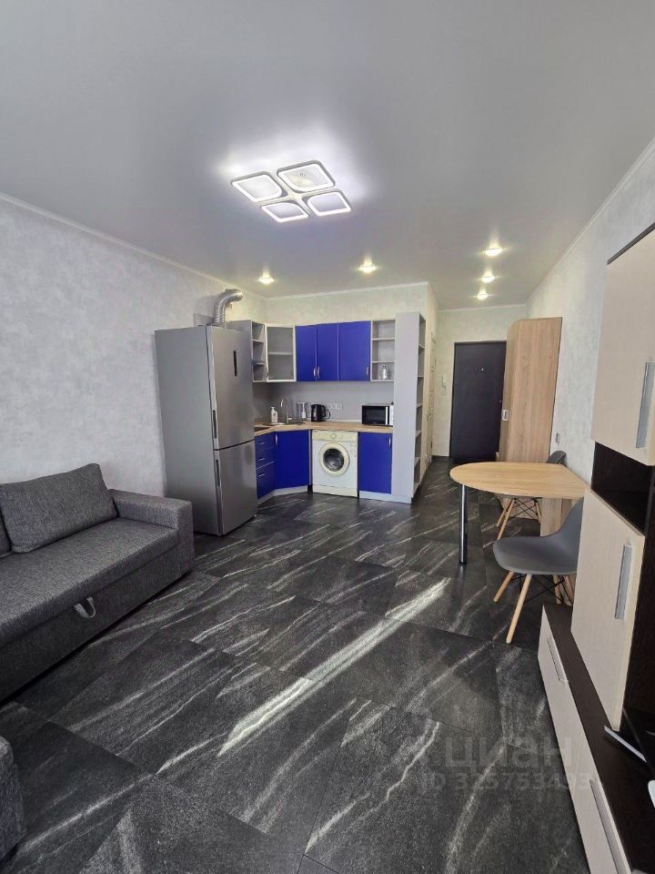 Сдаётся уютная студия современного кирпичного! Квартира с дизайнерским ремонтом полностью готова к проживанию. В ней есть всё необходимое: мебель на кухне и в комнате, а также современная бытовая техника — кондиционер, холодильник, телевизор и стиральная машина. Планировка включает совмещённый санузел с душевой кабиной и лоджию, где можно наслаждаться свежим воздухом. Дом оборудован двумя пассажирскими и двумя грузовыми лифтами, что делает перемещение удобным. Для автомобилей предусмотрена наземная парковка. В доме проведён интернет, поэтому можно без проблем работать или учиться онлайн. Жилой комплекс расположен в районе с развитой инфраструктурой.