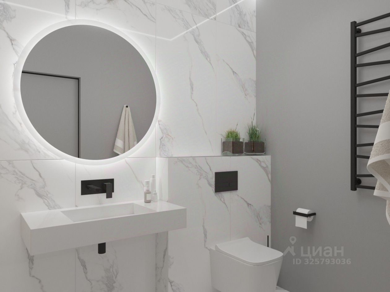 Планировка: кухня-гостиная, две спальни, два санузла, прачечная, гардеробная.
