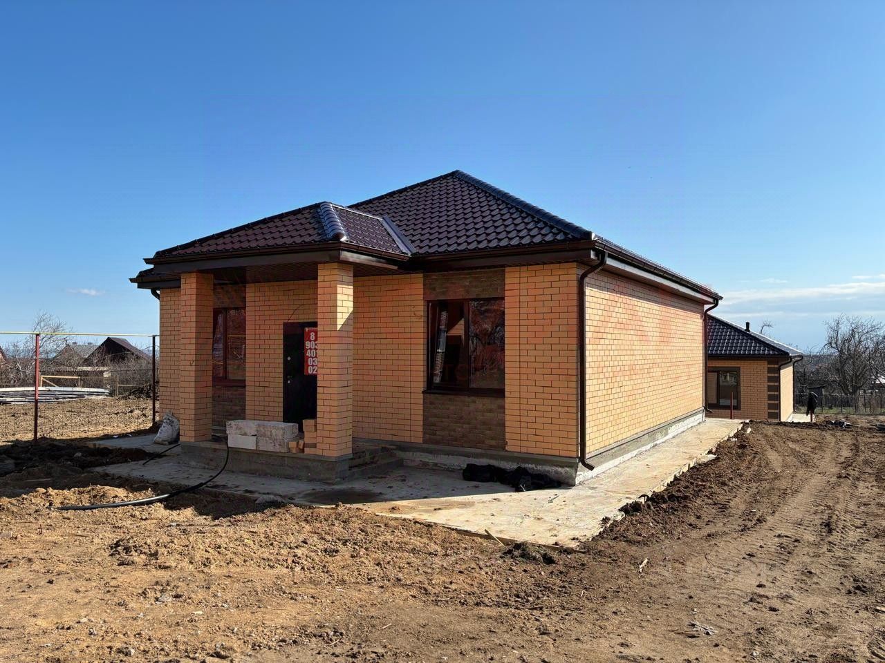 Строение выполнено из прочного монолитного , армированного фундамента, стены из газоблока, межпотолочное перекрытие- дерево, утеплено, а так же утеплен дом по периметру. В дом заведены все коммуникации: газовый котёл фирма Nоviеn , инженерная работа: электрическая разводка под клиента. Вода заведена в дом. Септик. Дом будет вам сдан с чистовой отделкой: внутри стены подготовлены под обои, натяжные потолки, теплые полы по всему дому. Дом обложен декоративным полуторным кирпичем. Дороги отсыпятся хорошим щебнем, а в будущем будет хороший качественный асфальт.