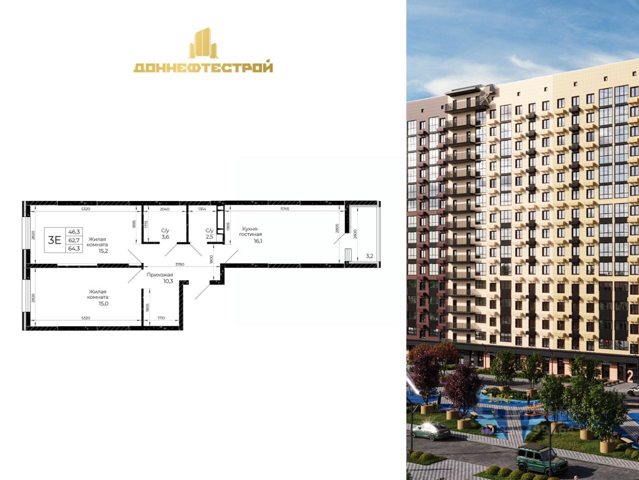 Продаётся 3-комнатная квартира в строящемся доме (Литер 4.1), срок сдачи: IV-кв. 2028, общей площадью 64.3 кв.м., на 11 этаже. Город стремительно развивается. Мы вместе с ним. Инфраструктура города пополняется новыми сервисами и полезными опциями, которые позволяют нам получать всё необходимое рядом с домом. В основе концептуального подхода СК ''ДОННЕФТЕСТРОЙ'' к развитию микрорайона ''Флора'' лежит формирование современного жилого и общественного пространства, интегрированного в живописную экологически благоприятную территорию на площади 30 гектаров. Вместе с жильём создана необходимая социальная, транспортная и коммерческая инфраструктура. В составе ''Флоры'' - два детских сада, трёхэтажная школа, физкультурно-оздоровительный центр, двор-парк с ландшафтным дизайном и фонтан. Для дополнительного комфорта жителей в проекте микрорайона предусмотрена новая автомобильная дорога с выходом в Аксайскому проспекту через ТЦ ''Мега''. В базовой структуре присутствуют коммерческие помещения для бизнеса, автономные котельные, подземный паркинг и гостевые парковки. Архитектура ''жилой экосистемы'' ''Флора'' среди других масштабных проектов городской застройки выделяется оригинальной логикой дизайна: аккуратная работа с цветом, формой и высотой зданий. Геометрия пространства подчёркнута через систему второстепенных и основных аллей в окружении деревьев и кустарников, образующих непрерывную навигацию внутри двора. В концепции благоустройства заложена идея единого динамичного пространства, которое создаётся через несимметричные линии пешеходных дорожек и аллей, направляющих жителей от одной зоны отдыха к другой. Переосмыслив актуальные запросы качества жизни современного человека в содружестве с архитекторами и ландшафтными дизайнерами, ГК ''ДОННЕФТЕСТРОЙ'' воплотила их в своём флагманском проекте ''Флора''.