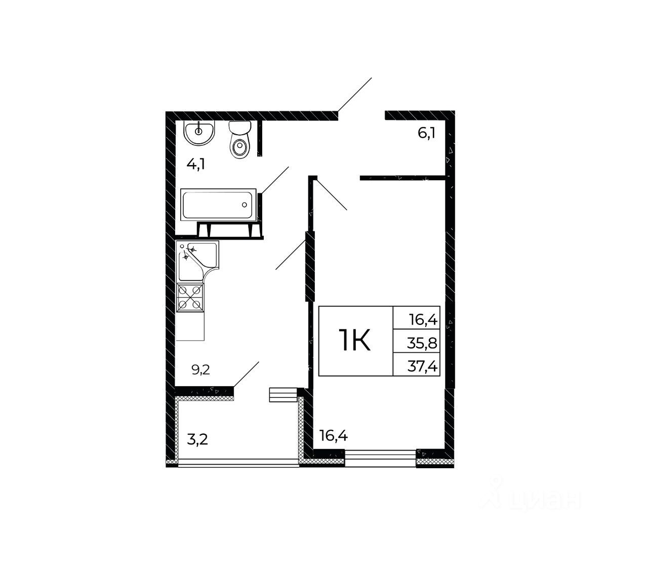 Общая площадь37,4 м2