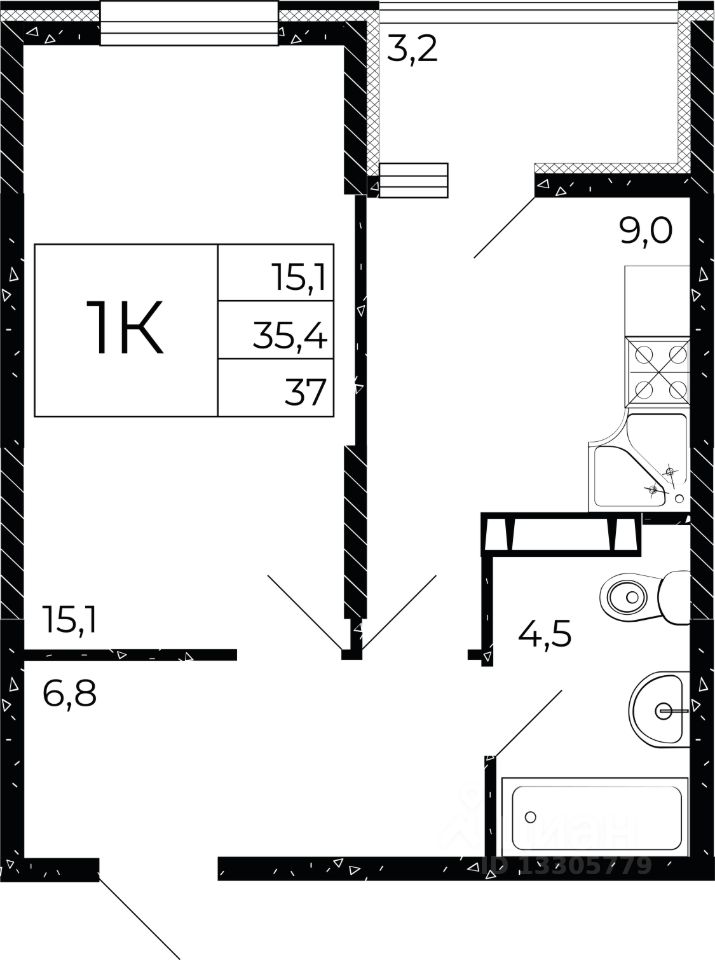 Общая площадь37 м2