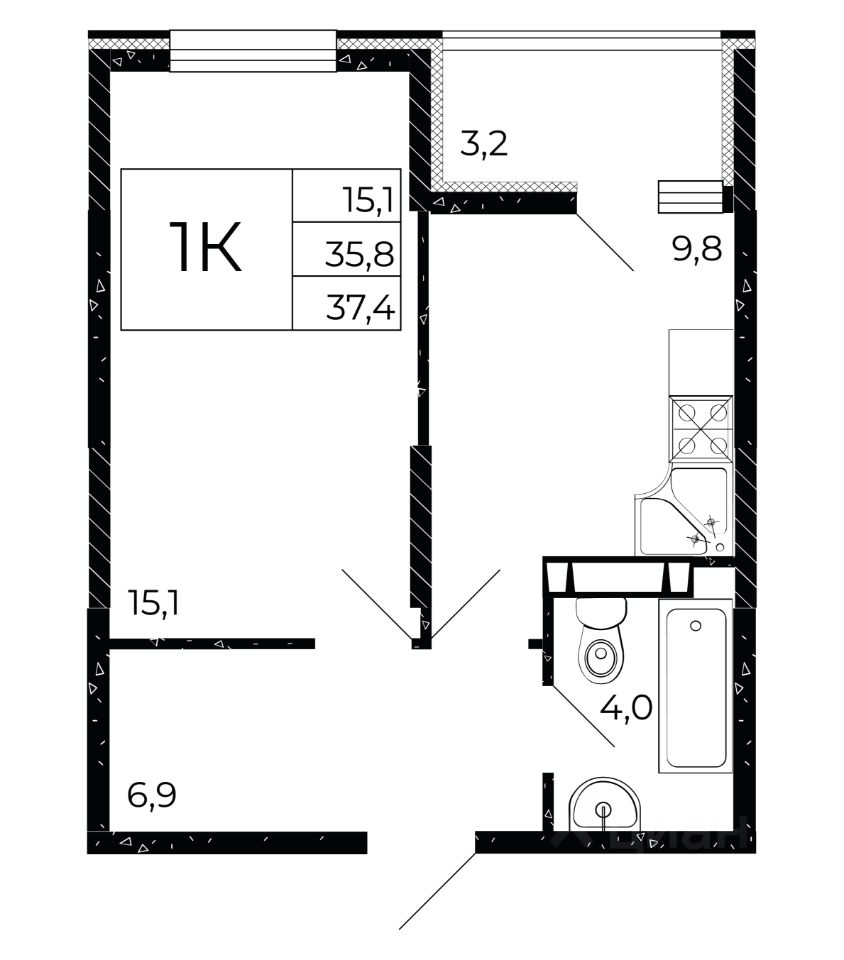 Общая площадь37,4 м2
