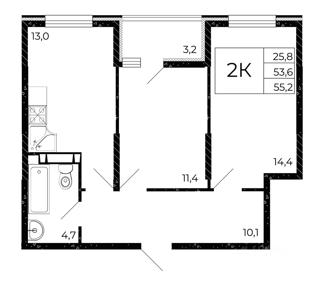 Общая площадь55,2 м2