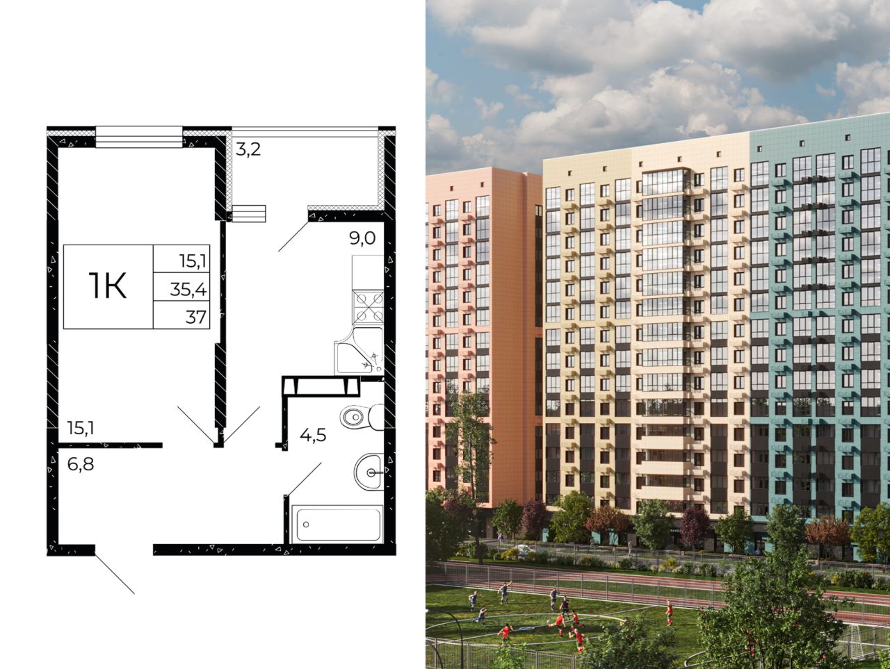 Общая площадь37 м2