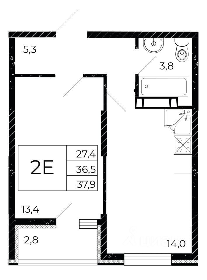 Общая площадь37,9 м2