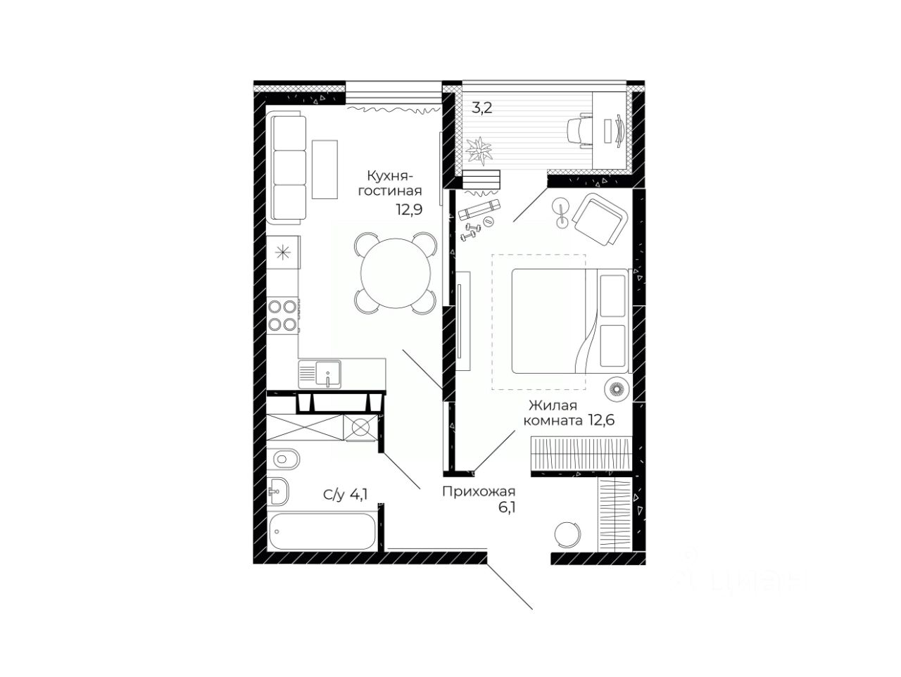 Общая площадь37,3 м2