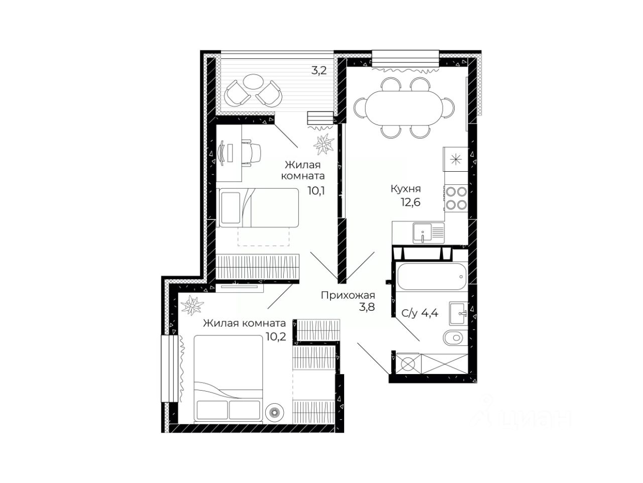 Общая площадь42,7 м2