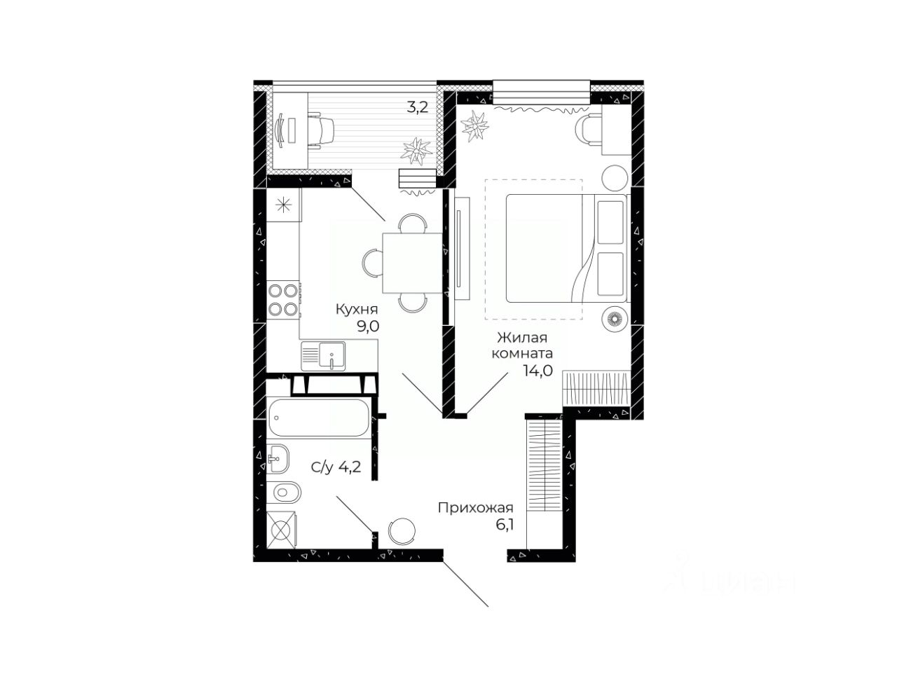 Общая площадь34,9 м2