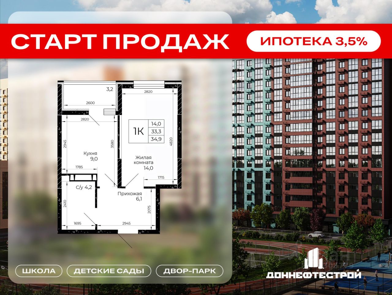 Продаётся 1-комнатная квартира в строящемся доме (Литер 4.1), срок сдачи: IV-кв. 2028, общей площадью 34.9 кв.м., на 6 этаже. Город стремительно развивается. Мы вместе с ним. Инфраструктура города пополняется новыми сервисами и полезными опциями, которые позволяют нам получать всё необходимое рядом с домом. В основе концептуального подхода СК ''ДОННЕФТЕСТРОЙ'' к развитию микрорайона ''Флора'' лежит формирование современного жилого и общественного пространства, интегрированного в живописную экологически благоприятную территорию на площади 30 гектаров. Вместе с жильём создана необходимая социальная, транспортная и коммерческая инфраструктура. В составе ''Флоры'' - два детских сада, трёхэтажная школа, физкультурно-оздоровительный центр, двор-парк с ландшафтным дизайном и фонтан. Для дополнительного комфорта жителей в проекте микрорайона предусмотрена новая автомобильная дорога с выходом в Аксайскому проспекту через ТЦ ''Мега''. В базовой структуре присутствуют коммерческие помещения для бизнеса, автономные котельные, подземный паркинг и гостевые парковки. Архитектура ''жилой экосистемы'' ''Флора'' среди других масштабных проектов городской застройки выделяется оригинальной логикой дизайна: аккуратная работа с цветом, формой и высотой зданий. Геометрия пространства подчёркнута через систему второстепенных и основных аллей в окружении деревьев и кустарников, образующих непрерывную навигацию внутри двора. В концепции благоустройства заложена идея единого динамичного пространства, которое создаётся через несимметричные линии пешеходных дорожек и аллей, направляющих жителей от одной зоны отдыха к другой. Переосмыслив актуальные запросы качества жизни современного человека в содружестве с архитекторами и ландшафтными дизайнерами, ГК ''ДОННЕФТЕСТРОЙ'' воплотила их в своём флагманском проекте ''Флора''.