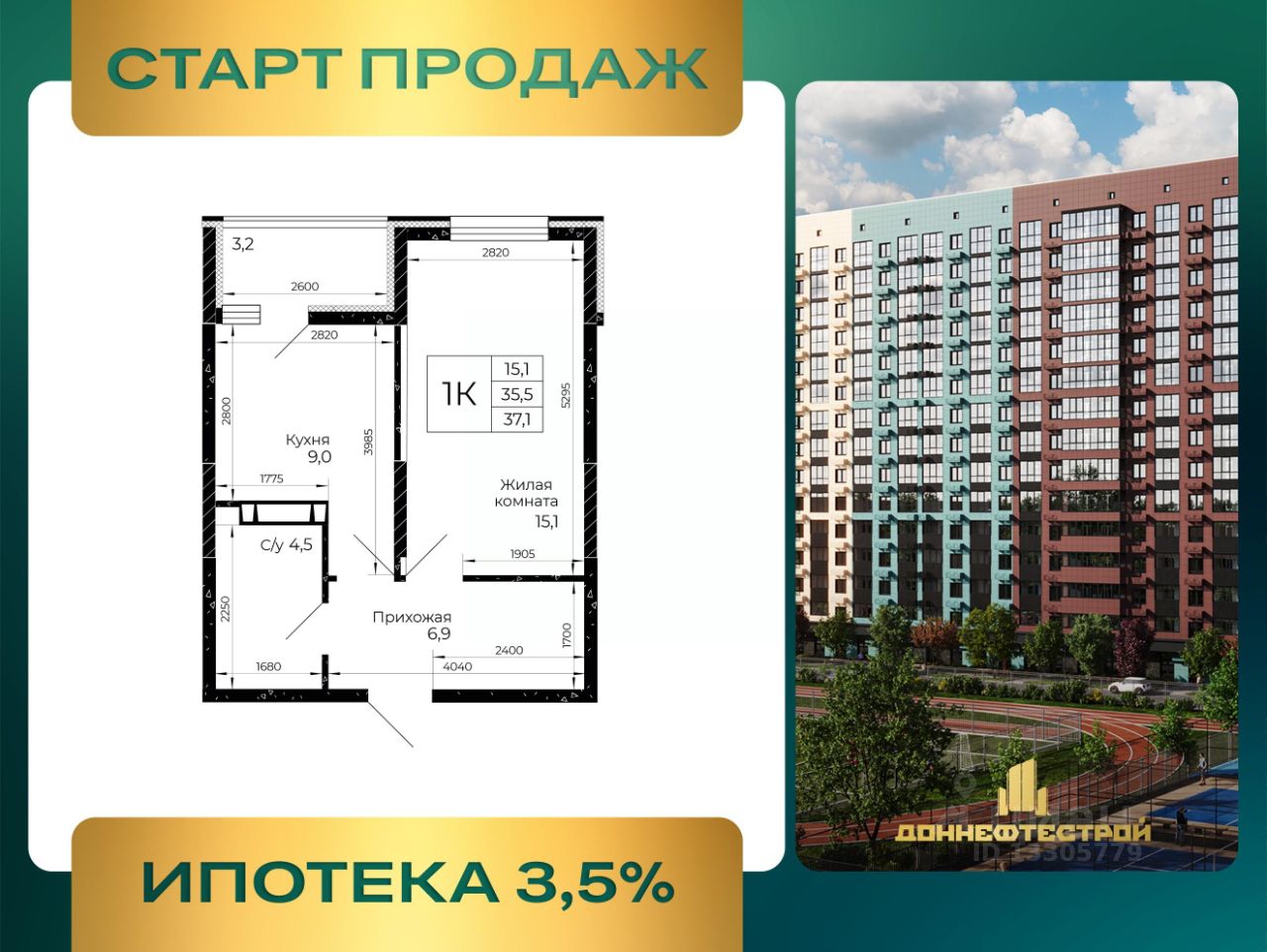 Продаётся 1-комнатная квартира в строящемся доме (Литер 4.1), срок сдачи: IV-кв. 2028, общей площадью 37.1 кв.м., на 8 этаже. Город стремительно развивается. Мы вместе с ним. Инфраструктура города пополняется новыми сервисами и полезными опциями, которые позволяют нам получать всё необходимое рядом с домом. В основе концептуального подхода СК ''ДОННЕФТЕСТРОЙ'' к развитию микрорайона ''Флора'' лежит формирование современного жилого и общественного пространства, интегрированного в живописную экологически благоприятную территорию на площади 30 гектаров. Вместе с жильём создана необходимая социальная, транспортная и коммерческая инфраструктура. В составе ''Флоры'' - два детских сада, трёхэтажная школа, физкультурно-оздоровительный центр, двор-парк с ландшафтным дизайном и фонтан.