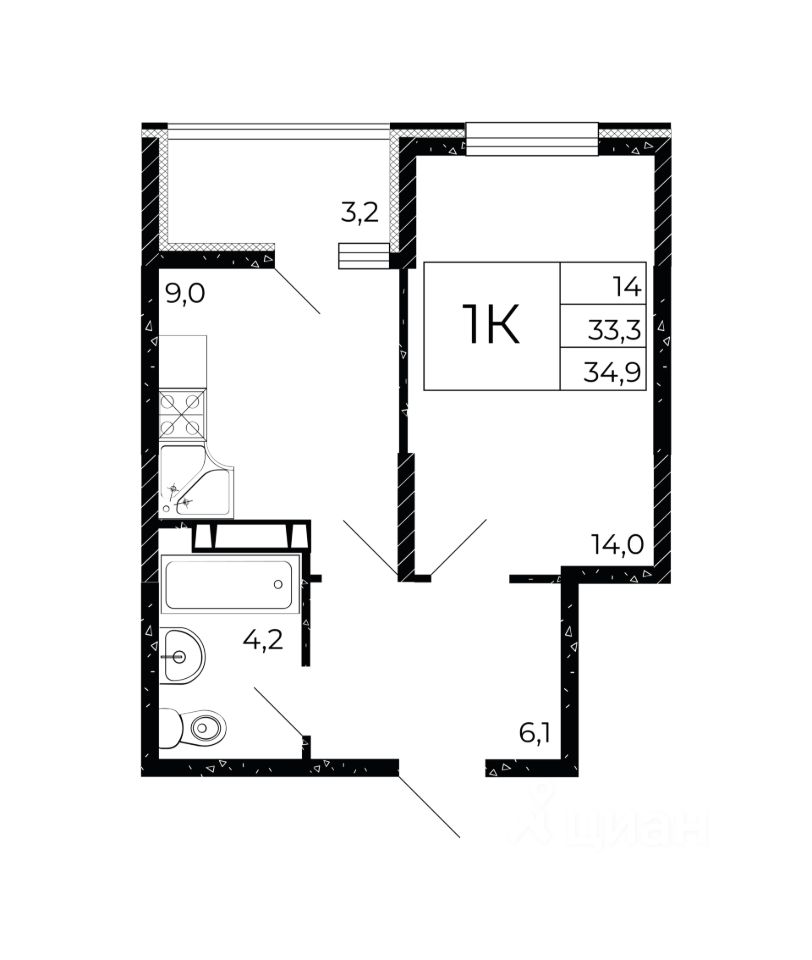 Общая площадь34,9 м2