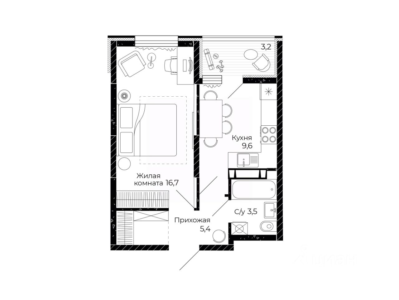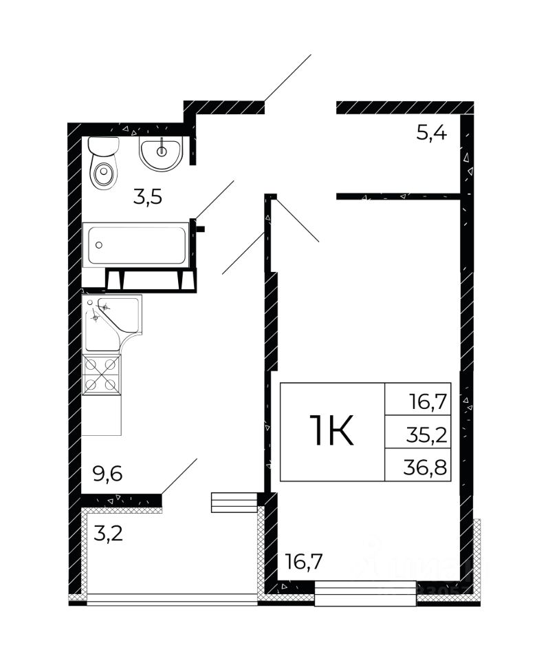 Общая площадь36,8 м2