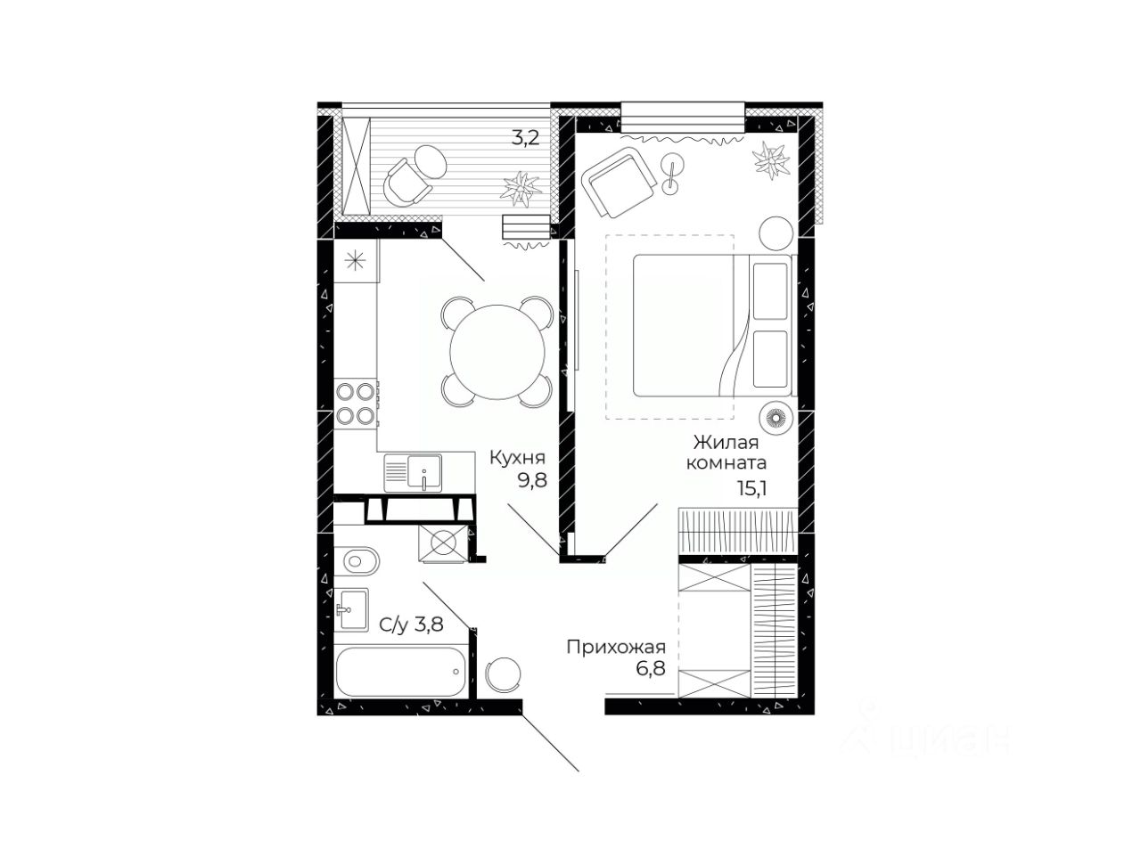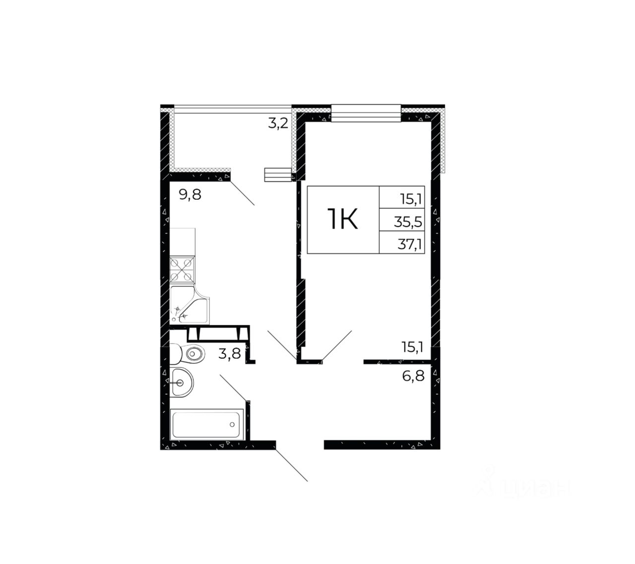 Общая площадь37,1 м2