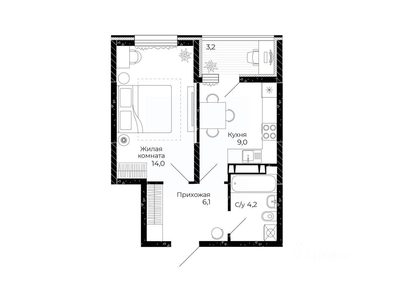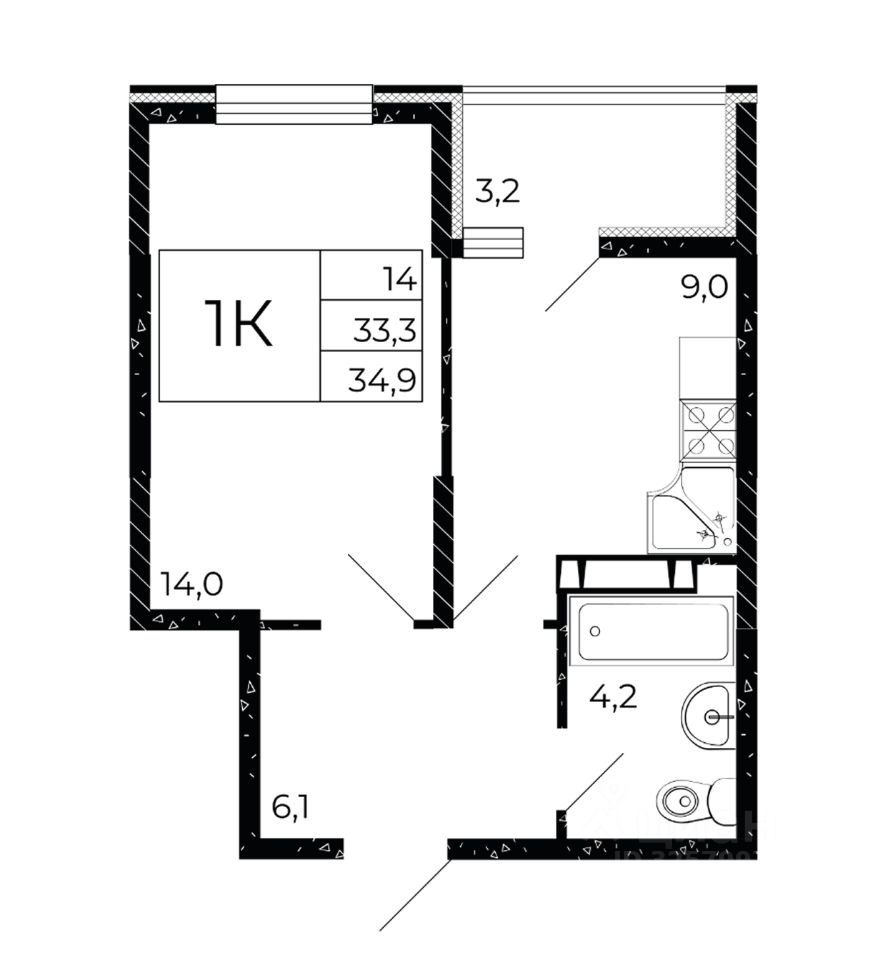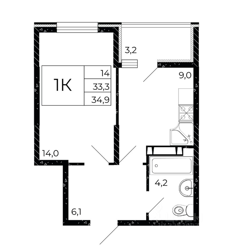Общая площадь34,9 м2