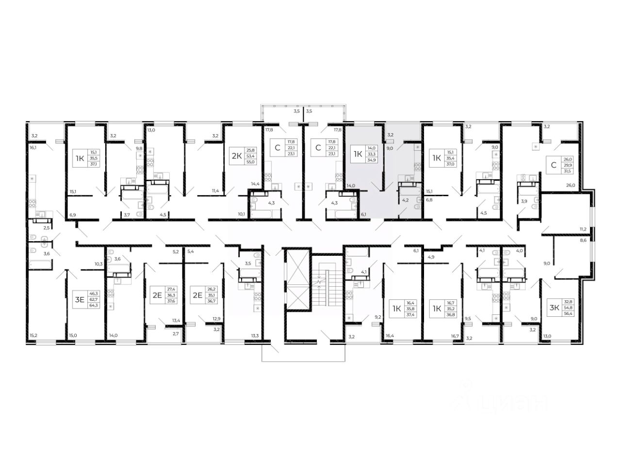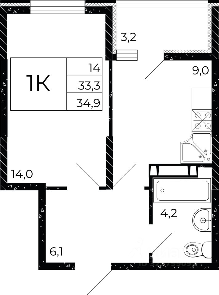 Общая площадь34,9 м2